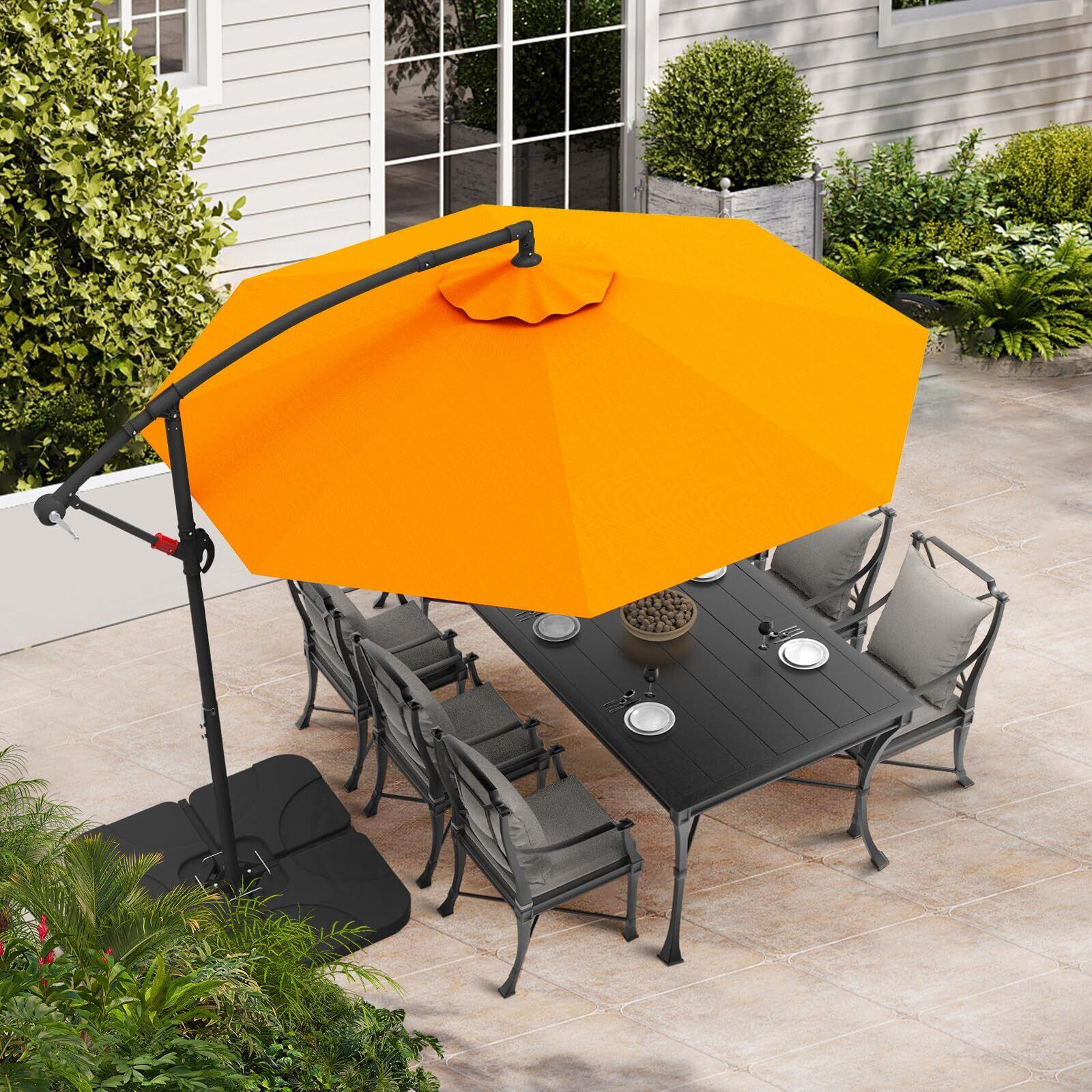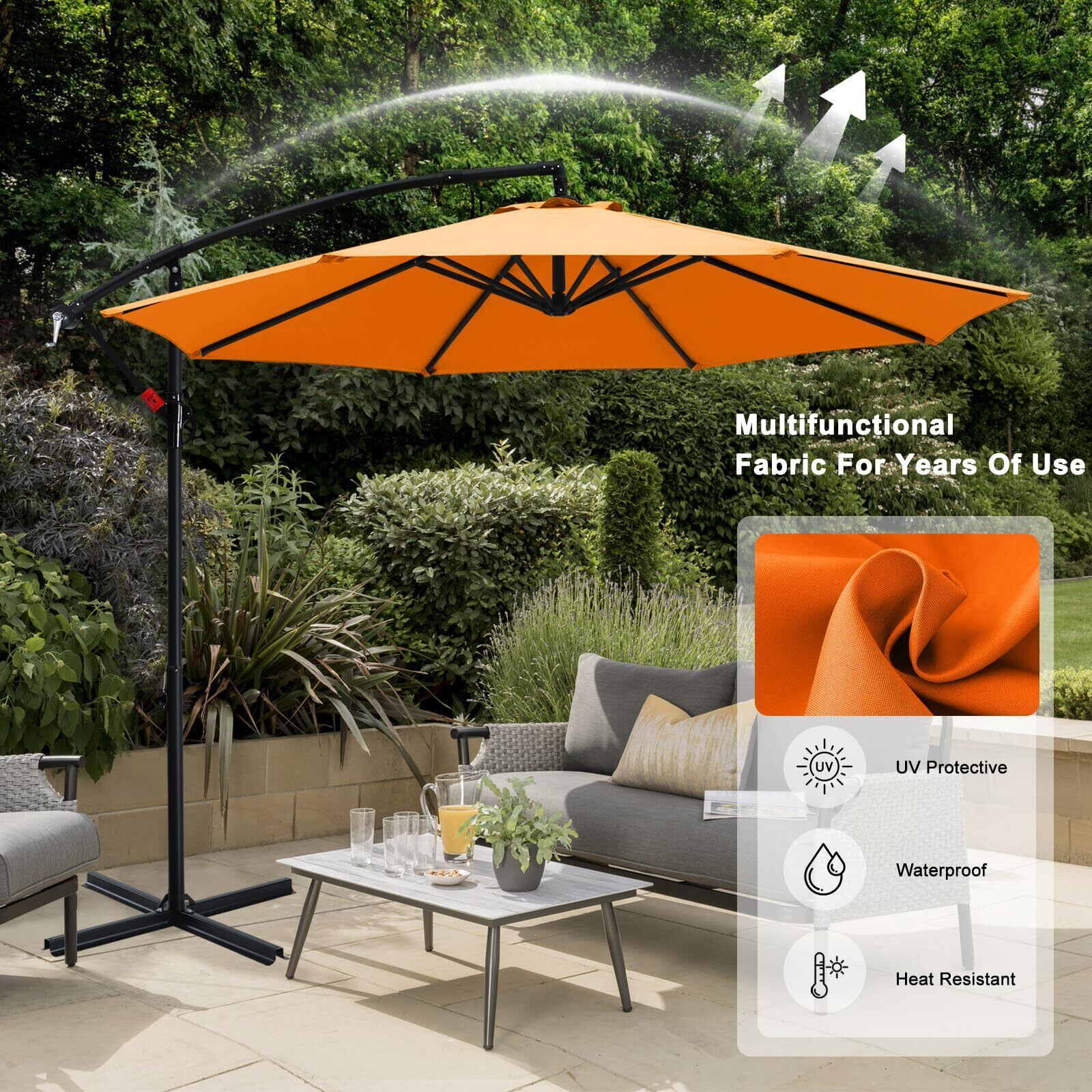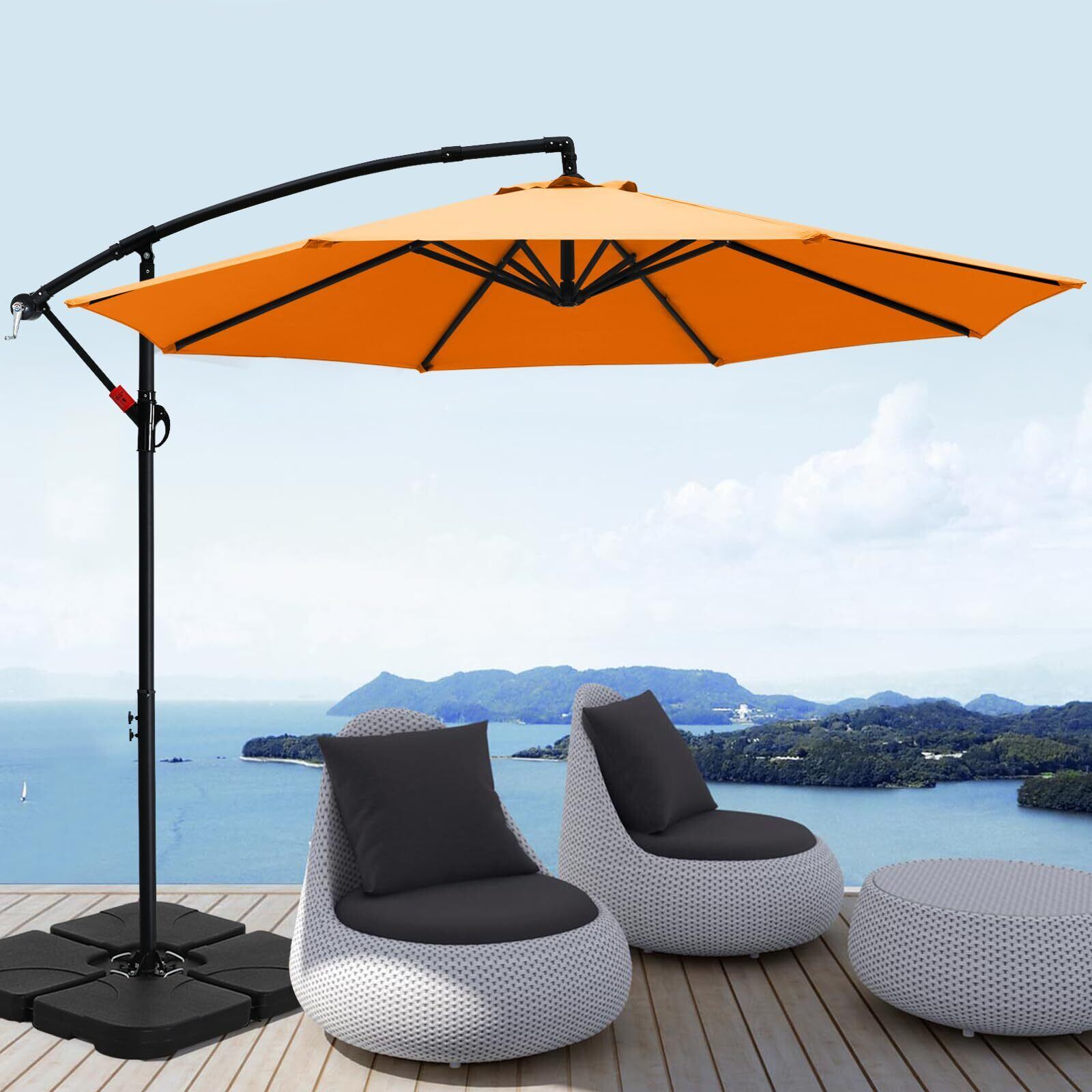 ABCCANOPY ガーデンパラソル 大型 パラソル 風に強い ハンギングパラソル 270cm UVカット 撥水 角度調整可 アウトドア ガーデン 庭 運動会 お店の玄関 屋外 プール スタンド付き オレンジ | KSショップ