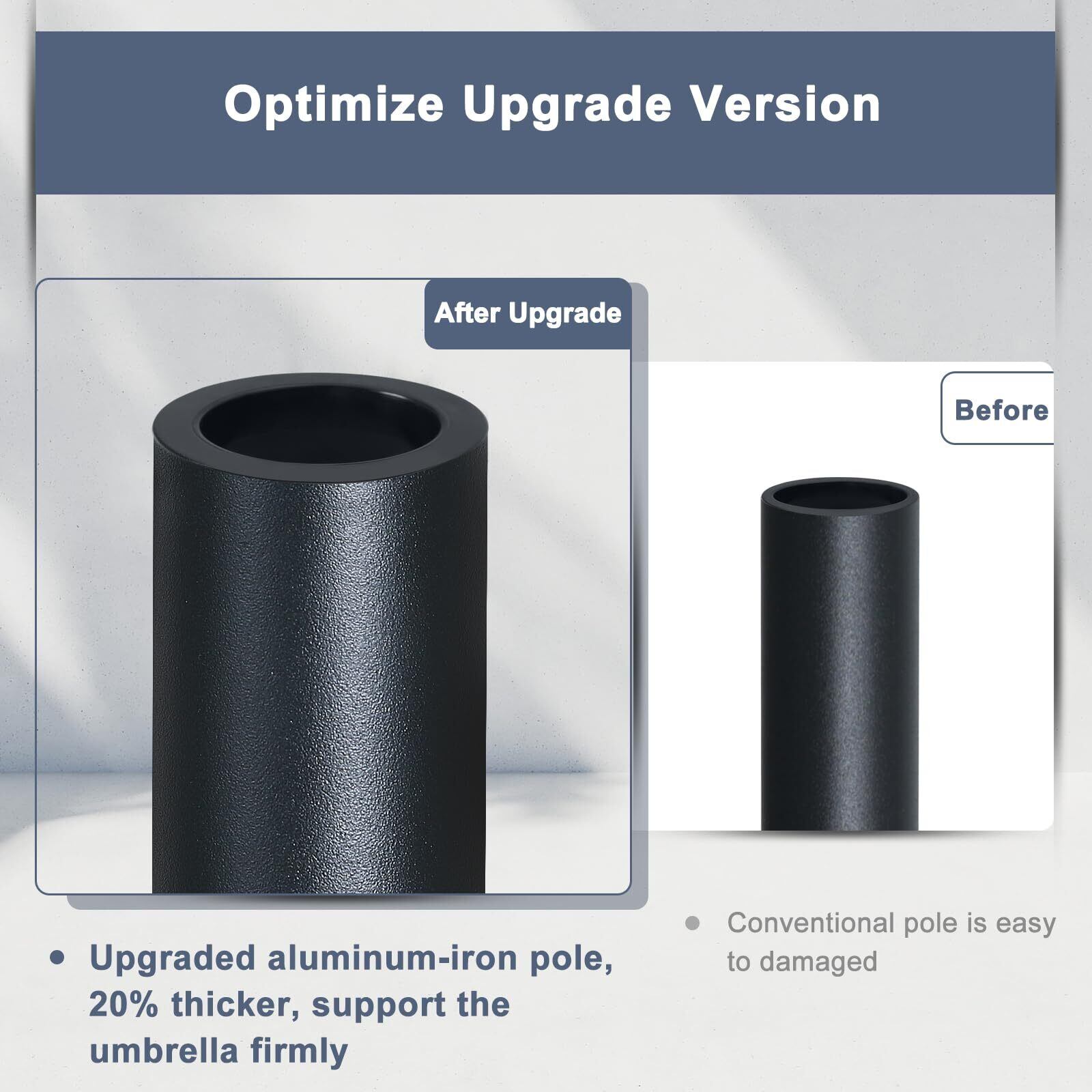 【頑丈な傘の骨で長持ち】強度高い鉄製ポールを採用、8本の骨組みがしっかりと傘を支え、耐風性能を向上させています。さびにくいコーティング加工して耐久性に優れて長期使用でもしっかりとした安定感ををもたらします。