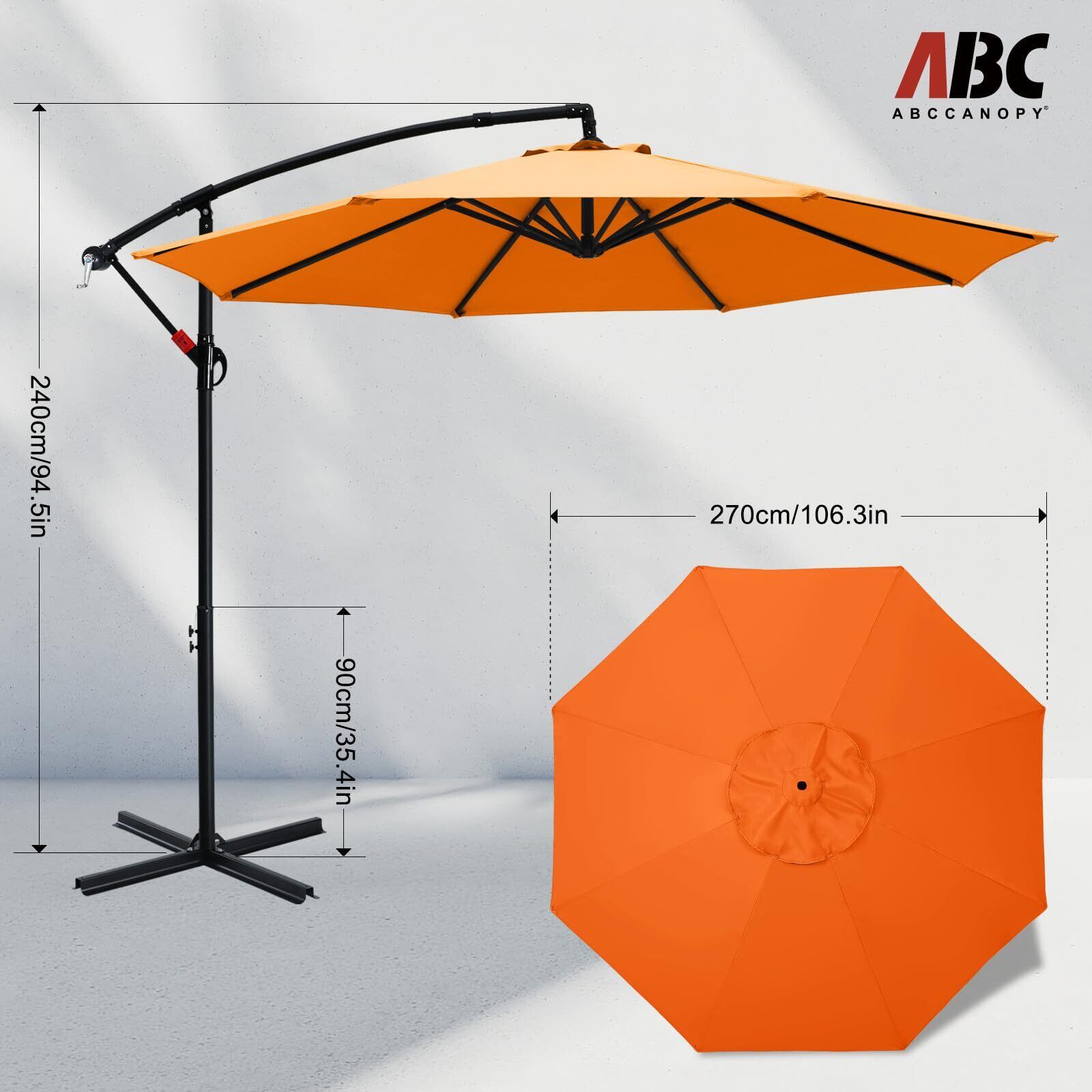 ABCCANOPY ガーデンパラソル 大型 パラソル 風に強い ハンギングパラソル 270cm UVカット 撥水 角度調整可 アウトドア ガーデン 庭 運動会 お店の玄関 屋外 プール スタンド付き オレンジ
