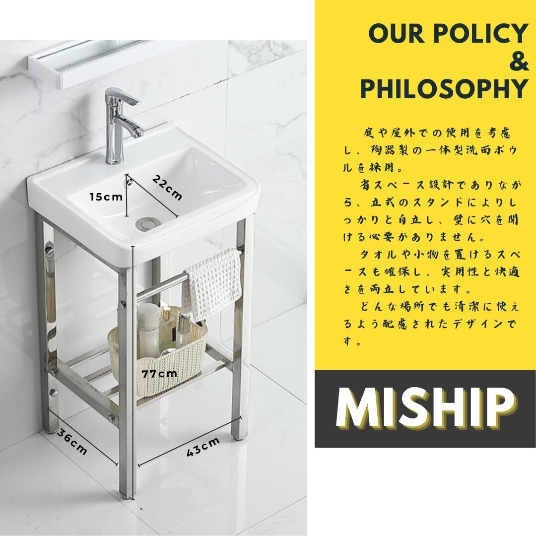 MISHIP ガーデンシンク 洗面台 陶器製 長さ43×幅36×高さ77cm 温水および冷水対応 蛇口付き 簡易シンク 屋外 家庭用 コンパクト 工場 農園 ステンレスシンク シングルシンク 簡単取付