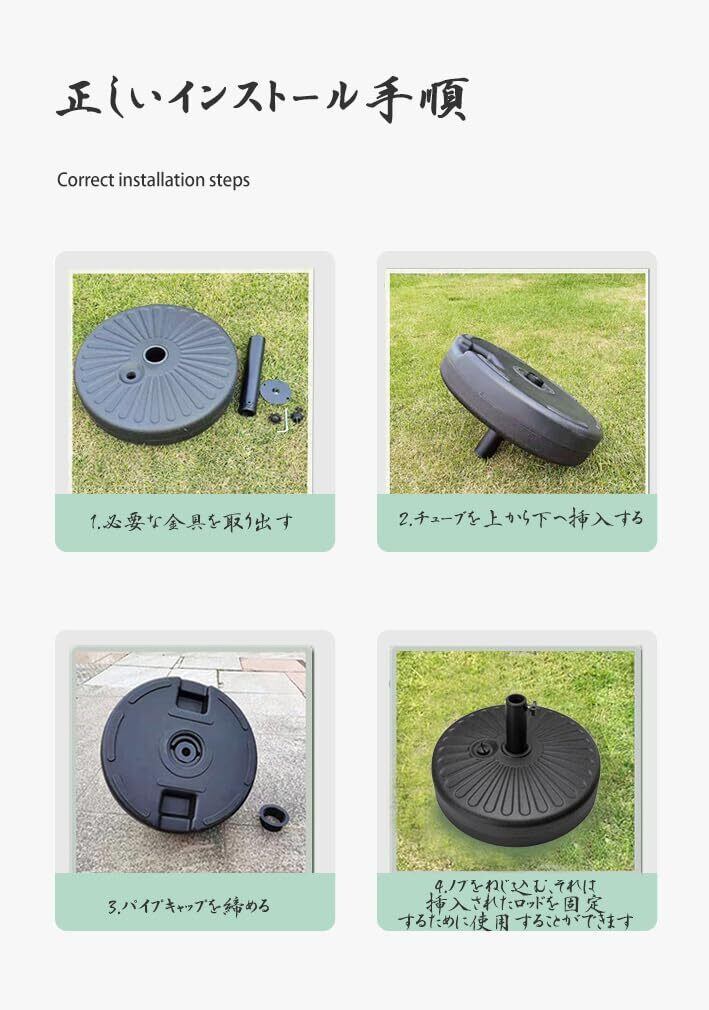 品質素材:このガーデンアンブレラベースはHDPEプラスチック製で、長寿命、耐候性、安定性、耐久性、耐風性、転倒防止、あらゆる種類の日傘やパティオアンブレラを簡単にサポートします。安定性と耐久性を重視するお客様のニーズを満たすように設計されています。