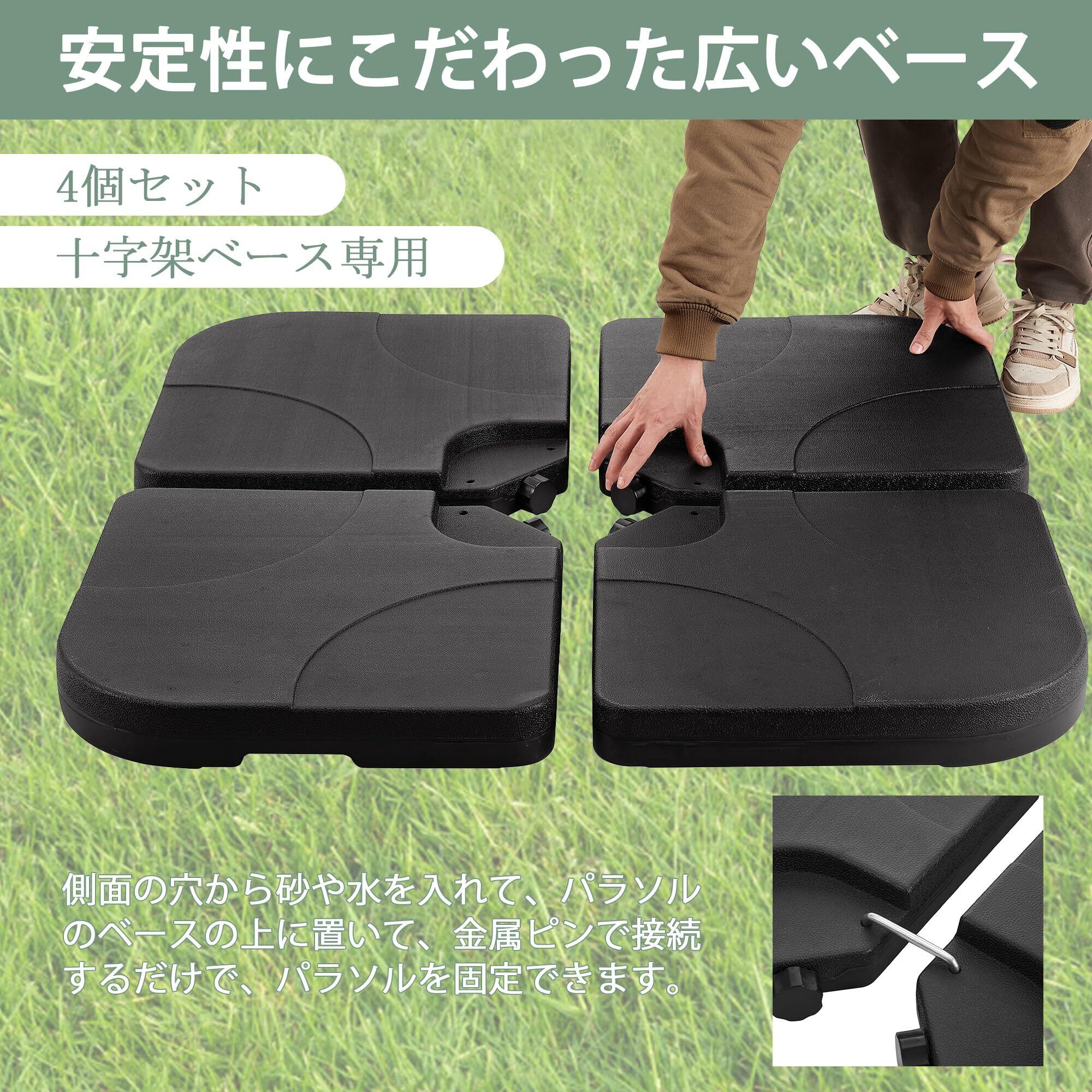 【安定性抜群・風に強い】本社のパラソルベースはパラソルをしっかり固定し、パラソルを安全に使えるための必需品です。十字架の構造なので、パラソルのバランスをしっかりと保ちながら、4枚セットの重量を合わせて安定性が優れており、風に強いです。