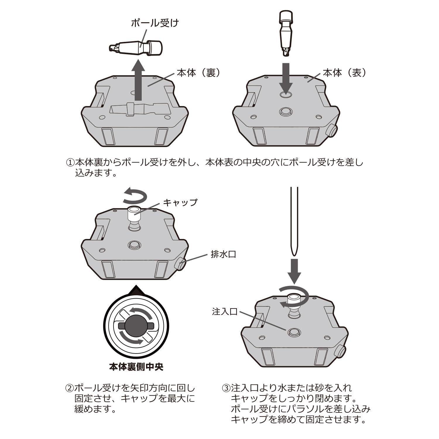 ※必ず水または砂を入れてご使用ください。
