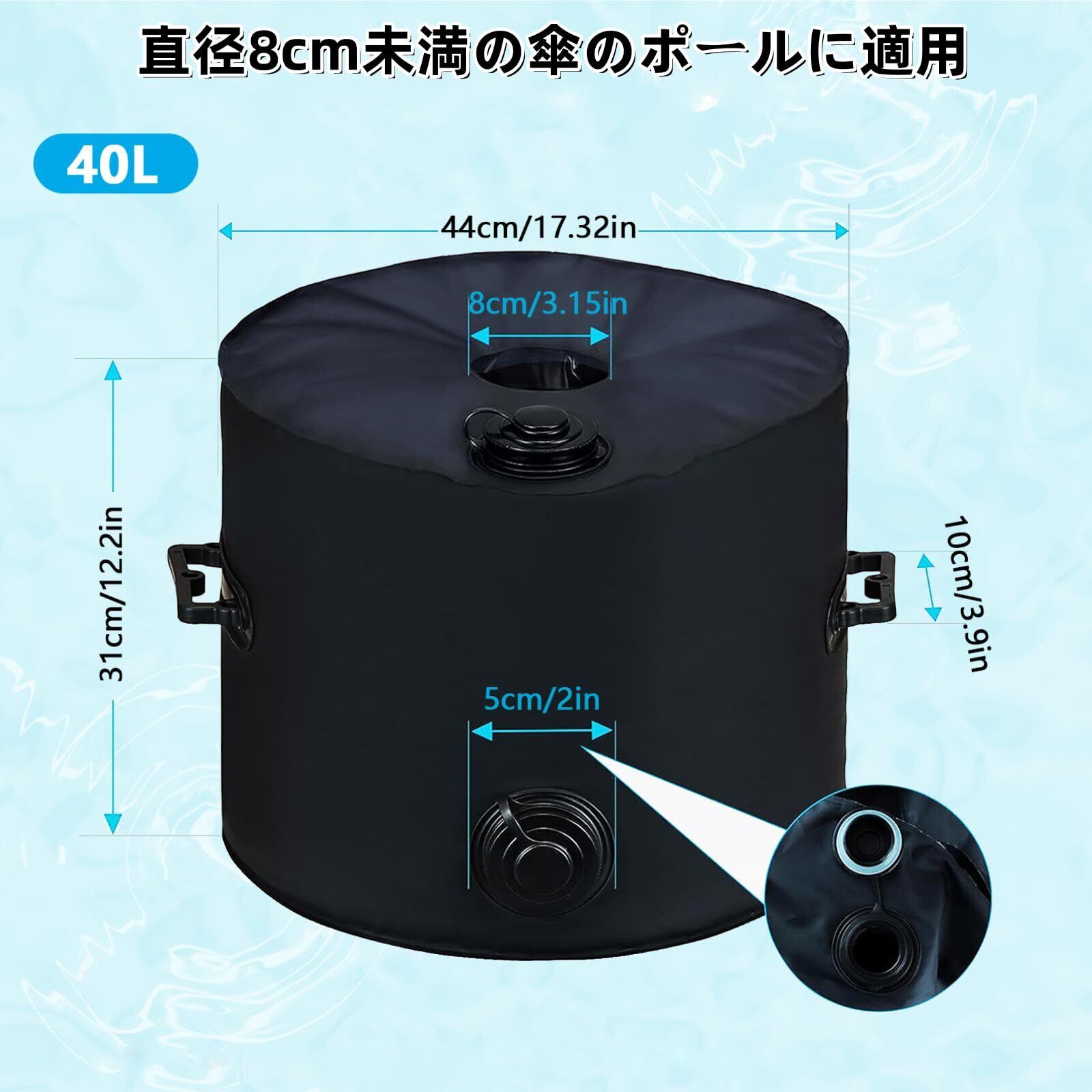 TOWEBOORY パラソルベース 注水式 40kg パラソル 重し 風に強い 傘ベースウェイトバッグ 簡単設置 パラソルウェイト 折り畳み ウォーターバッグ 直径8cm以下の傘ポールに対応 キャンプ用品 屋外 釣り ベランダ ビーチ 公園 Umbrella Stand | KSショップ