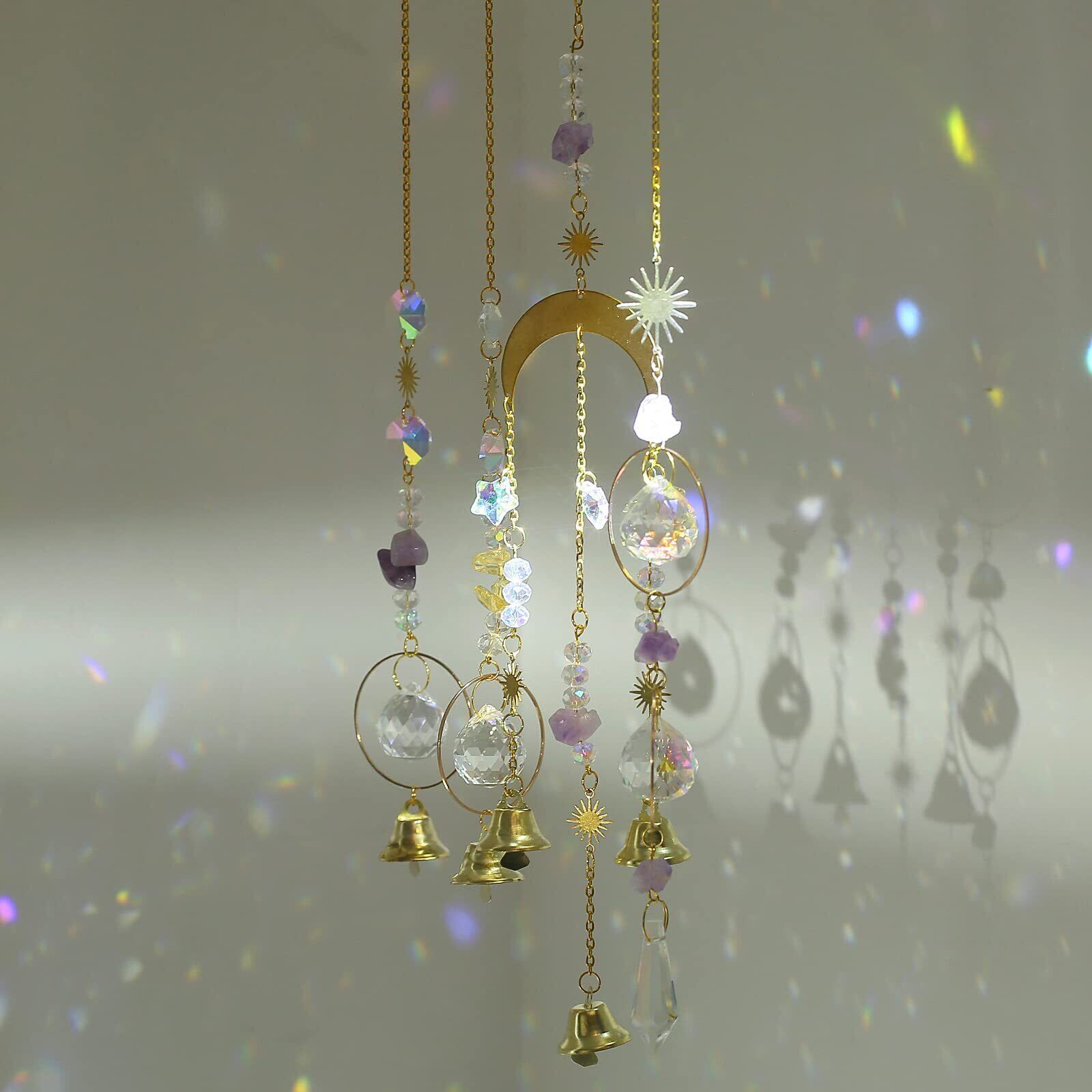 TENGFENG 天然水晶付きサンキャッチャー アメジストクリスタルハンギング さざれ石と鈴付き パワーストーン風水 開運グッズ 水晶さんきゃっチャー カラフルレインボーメーカー ドロップ 親友、母の日ギフト、車、窓、玄関、入口、ドアーインテリア飾り 星月アメジスト | KSショップ