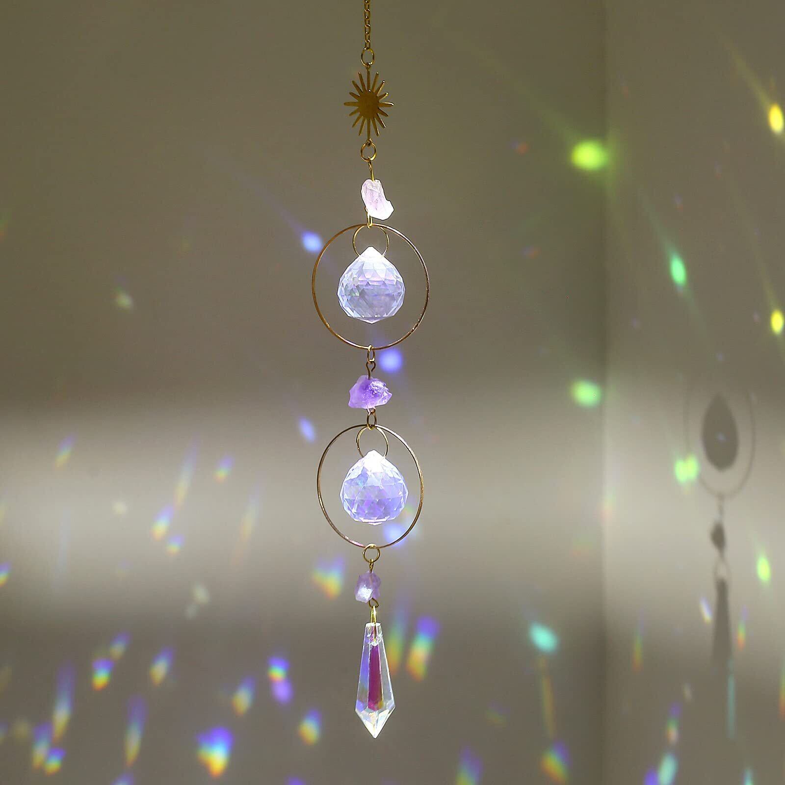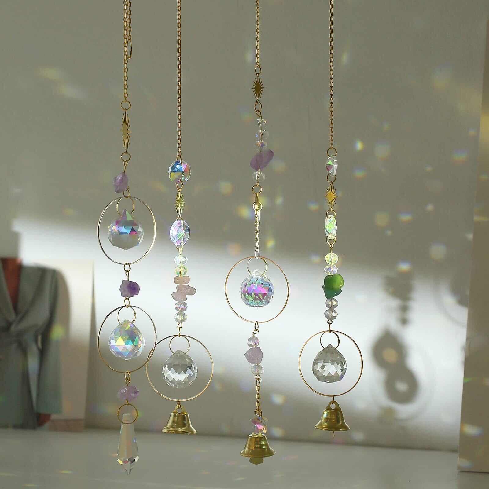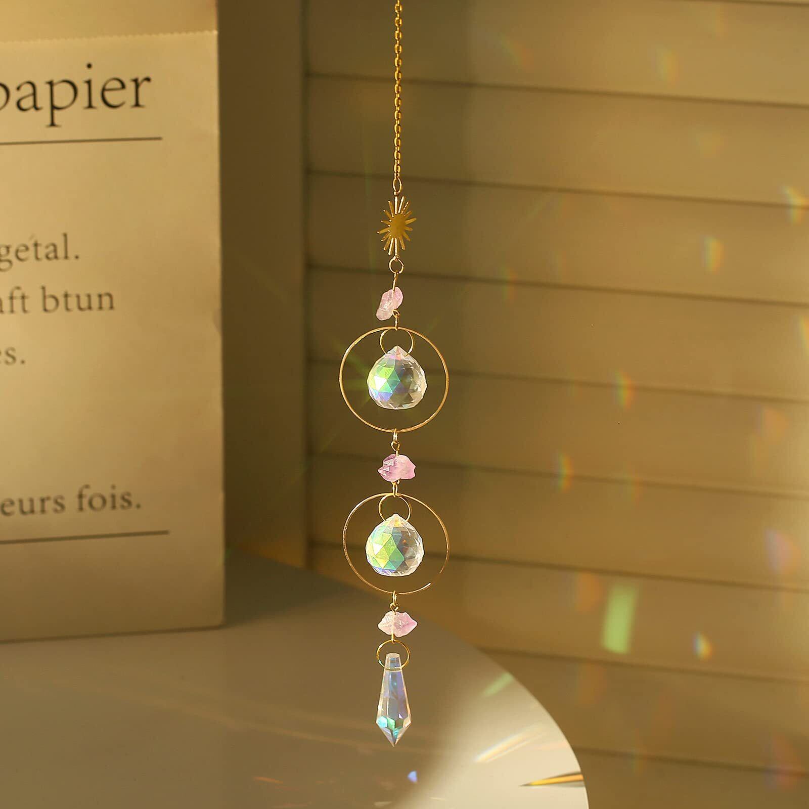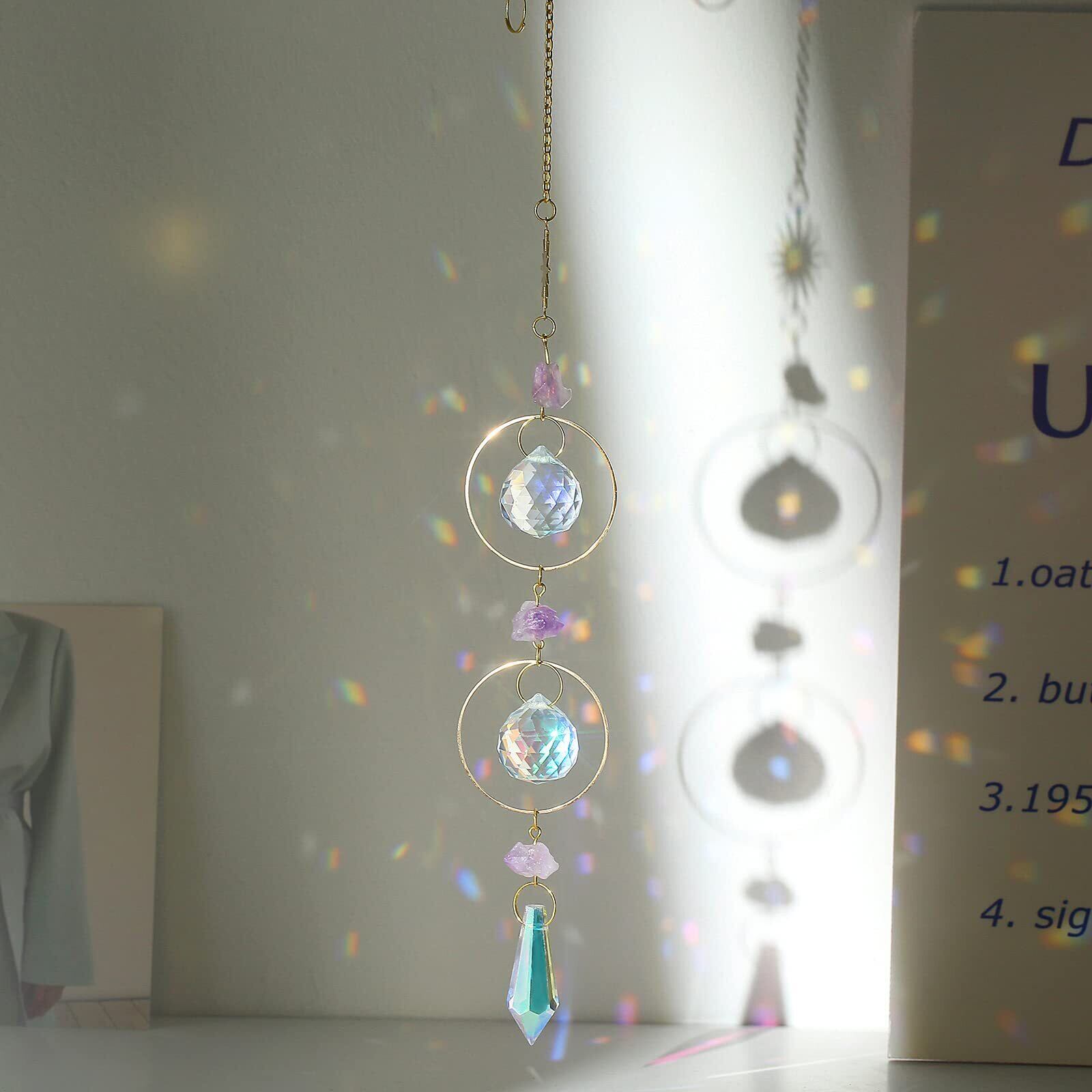 ✤【高透明度クリスタルハンギング】:天然石水晶以外のクリスタルボールとビーズは高品質なK9クリスタル材質使用、カメラレンズとその他の光学部品に採用されている同じK9材質で、光の透過率と屈折率が非常に高く、透明度が高く、キズや気泡などはなし、日差しが当たると、キラキラとした綺麗な世界が得られます。