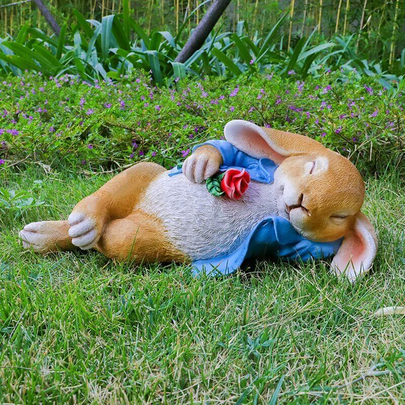 【お昼寝うさぎとローズ】ローズはロマンチックな雰囲気を演出し、眠りの姿は艶やかに人々を、生活に憧れ、ローズに愛し、キュートな彫像があなたの家をもっと暖かくて美しくさせます!