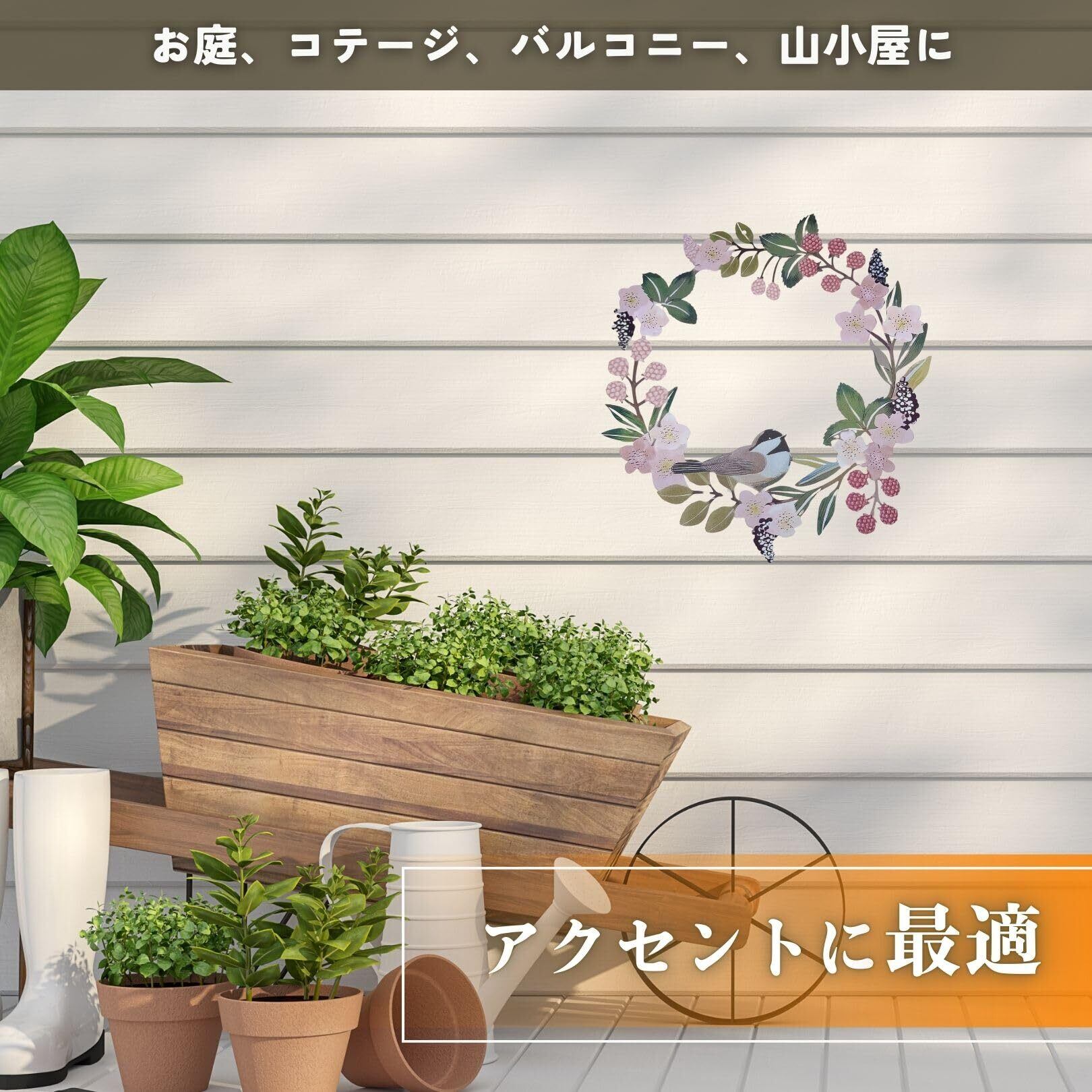 アイアンリース 壁掛け ガーランド 装飾 屋外 フラワーリース ガーデンオブジェ アンティーク インテリア 玄関 (ブルーA)