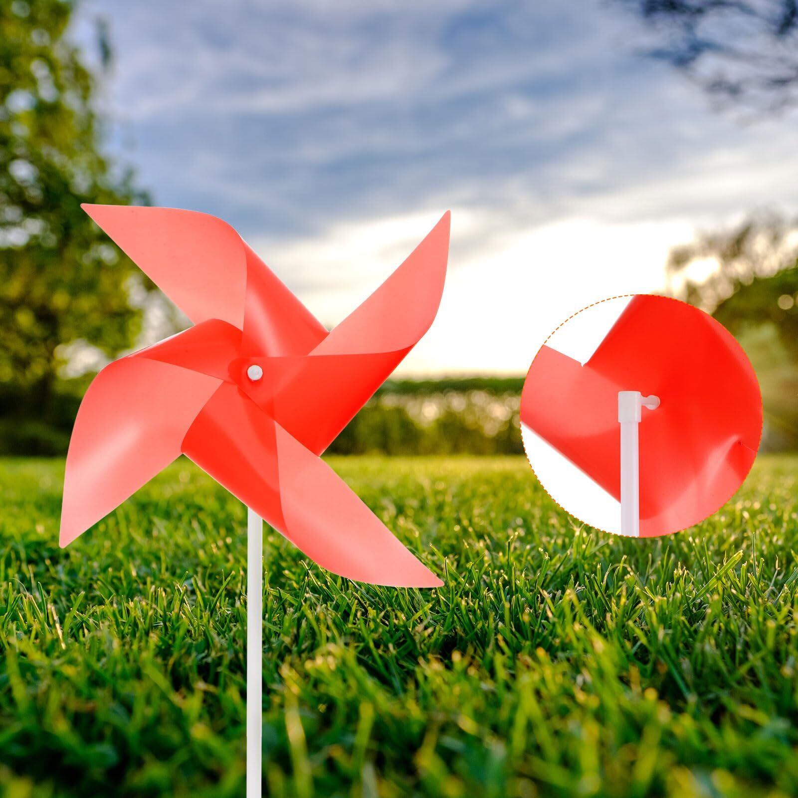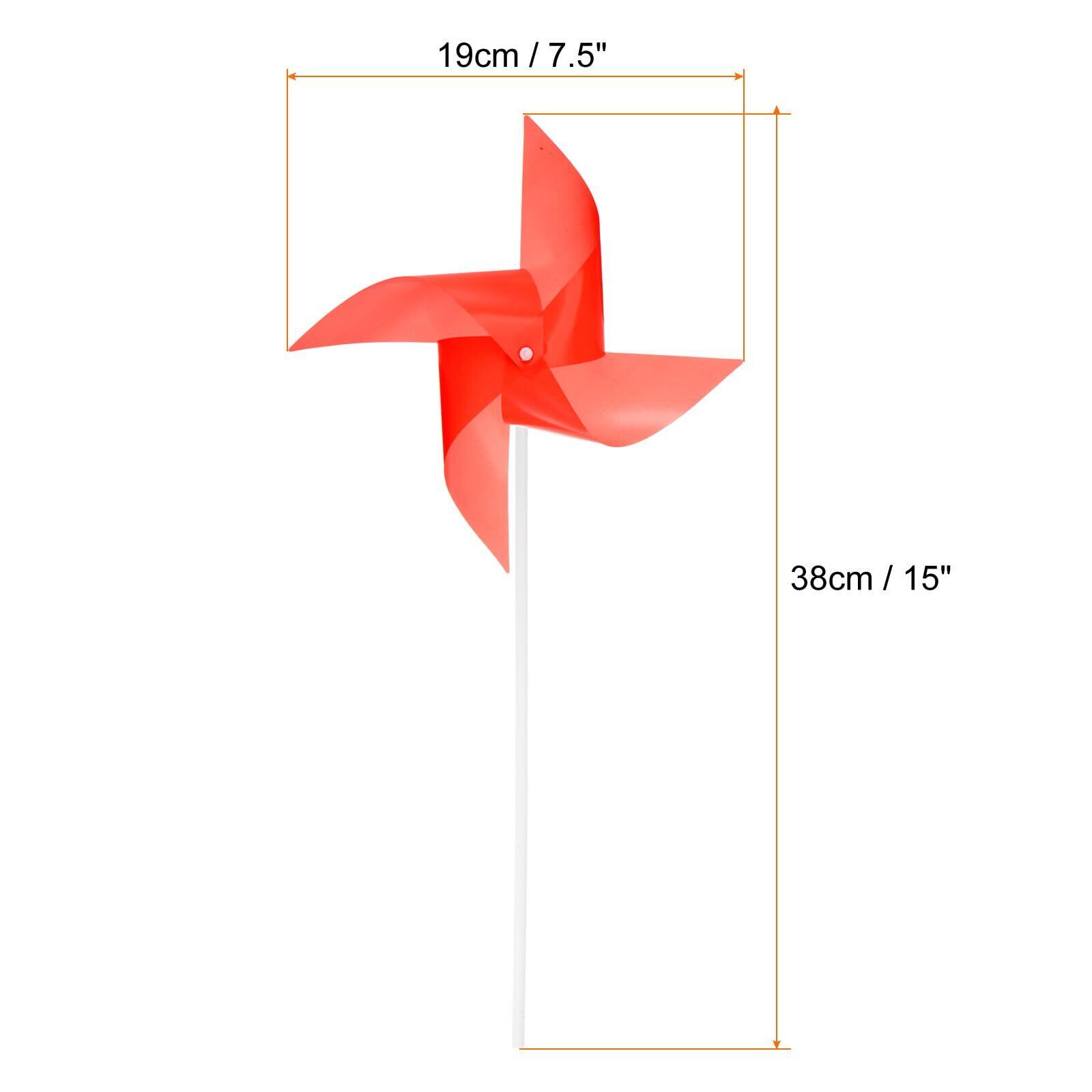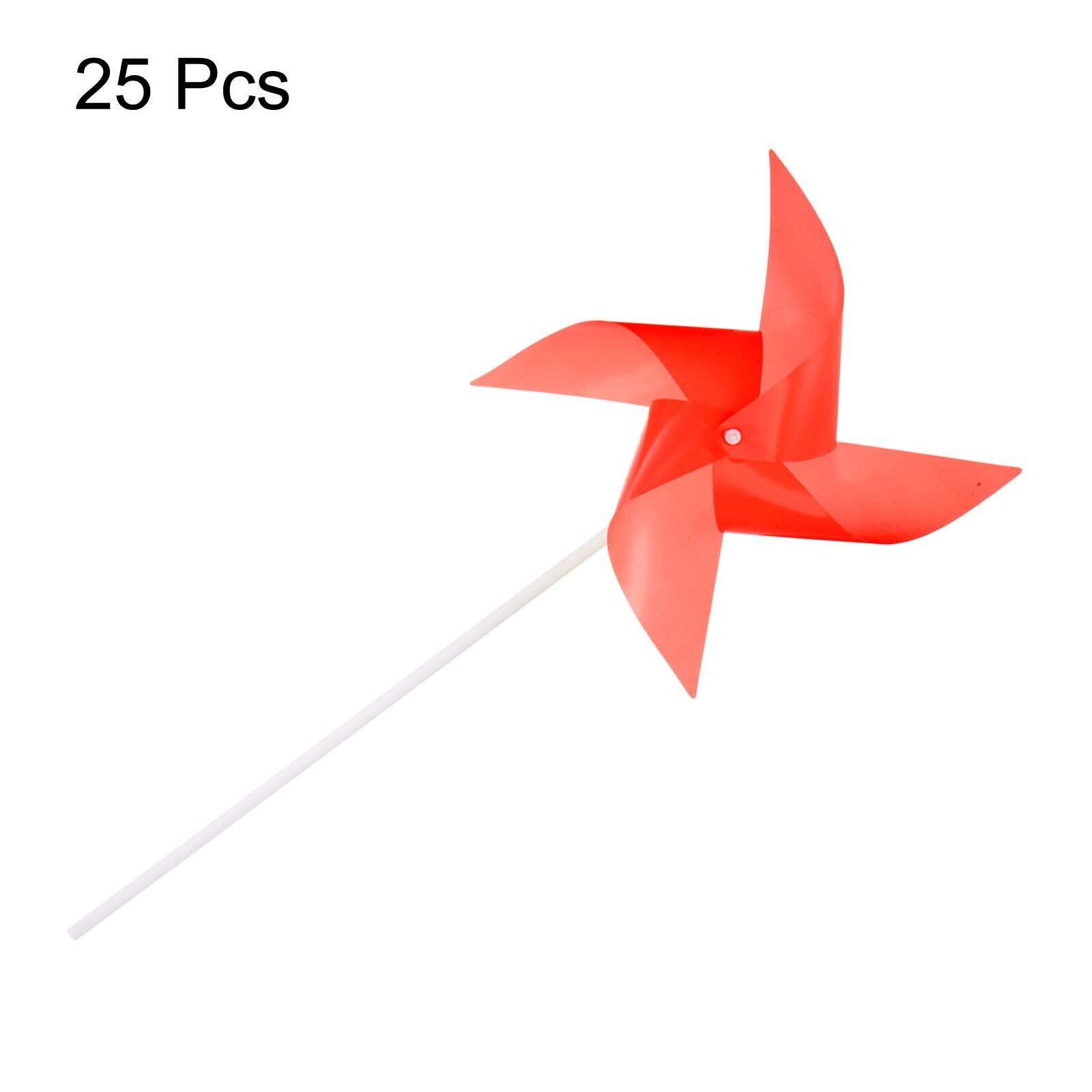 uxcell 庭や庭園用の風車25個セット 15"×7.5" 4枚羽根のピンホイール風車 風に強く防水で鳥よけ ステークス付き パティオの装飾に最適 赤色