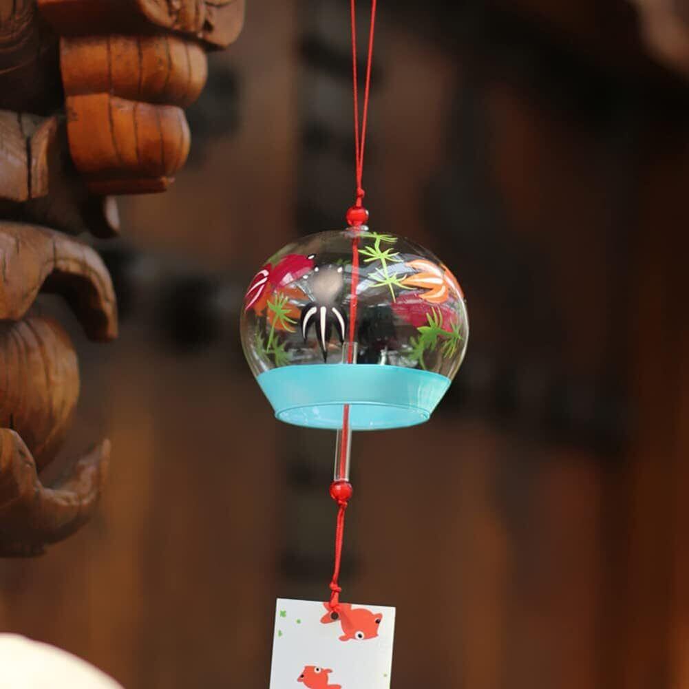 風鈴は、日本の夏の代表的な風物詩です、幸運のシンボルです。ひとつひとつ手作りのため、風鈴の形や色、音色もすべて個性があります。祝福:江戸風鈴 風鈴に貼ってあるカードに願い事やおめでとうを書いて、毎日風が吹いて、心地よい風鈴で祝福がはためく。