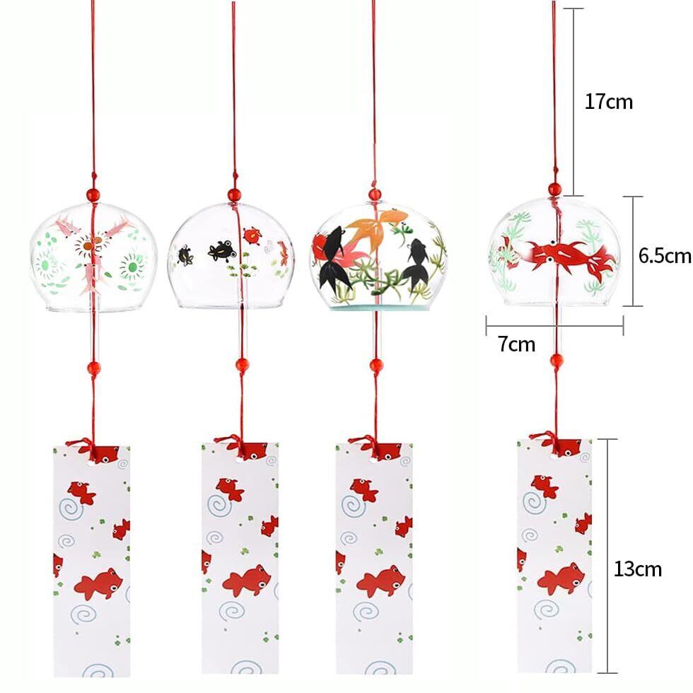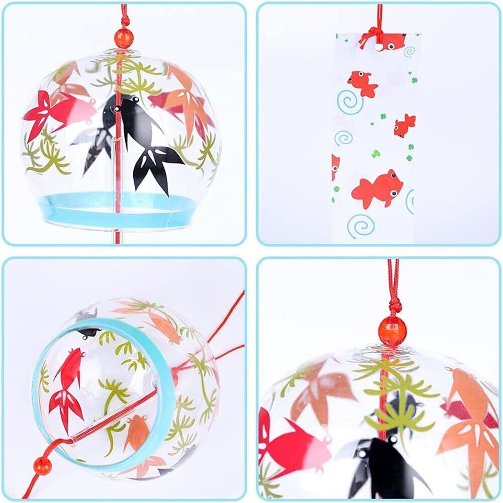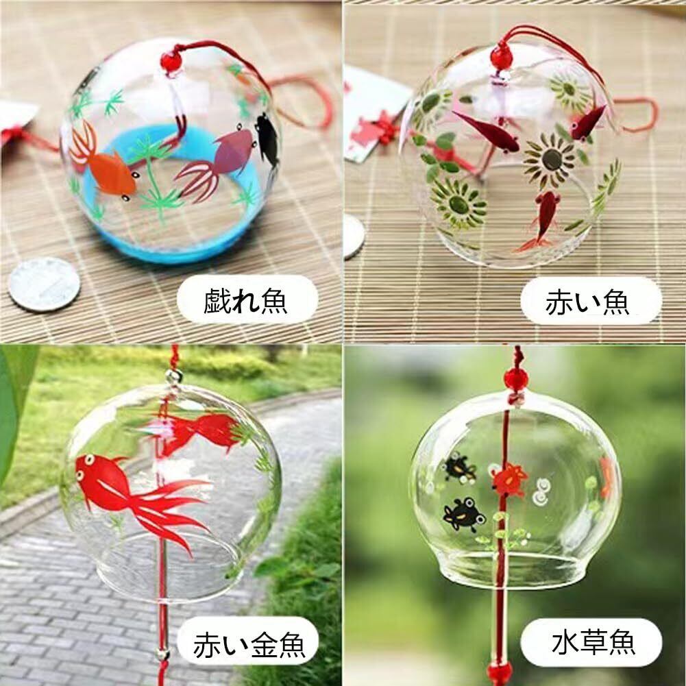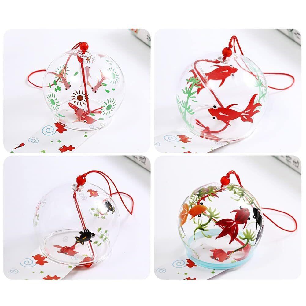 風鈴 夏の風物詩 ウィンドチャイム ガラス風鈴 手作り風鈴 江戸風鈴 癒しの音 和風 風鈴 おしゃれ 可愛い 涼しい ぶら下げ風鈴 音色よく 納涼 手作り 飾り物 雰囲気作り 吊り飾り 屋根飾り おみやげ 祝福 贈り物 短冊付き (金魚 4個セット)