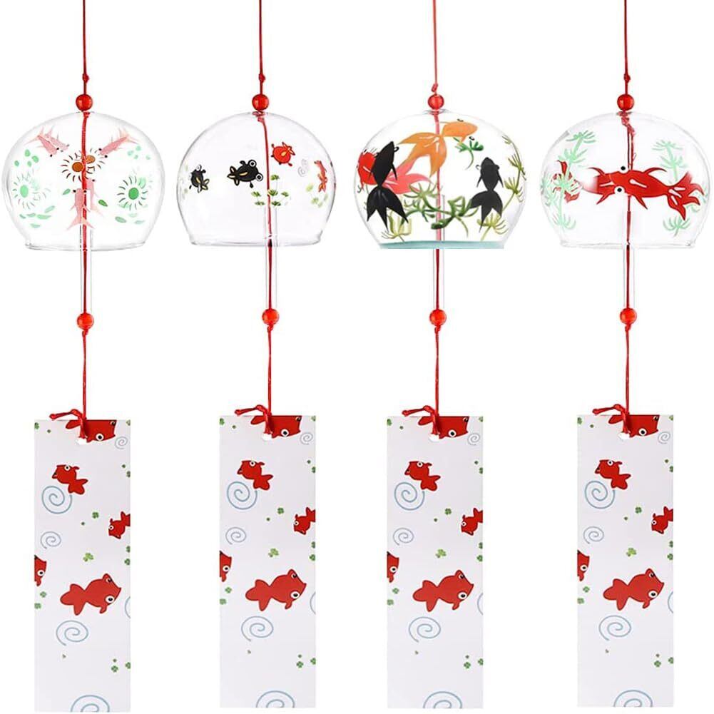 風鈴 夏の風物詩 ウィンドチャイム ガラス風鈴 手作り風鈴 江戸風鈴 癒しの音 和風 風鈴 おしゃれ 可愛い 涼しい ぶら下げ風鈴 音色よく 納涼 手作り 飾り物 雰囲気作り 吊り飾り 屋根飾り おみやげ 祝福 贈り物 短冊付き (金魚 4個セット) | KSショップ