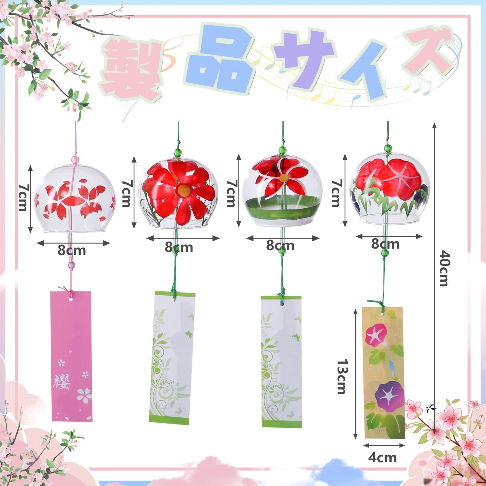 風鈴 手作り風鈴 4点セット ガラス 江戸 癒しの音 涼しい感じ 夏の風物 幸運 夏の風物詩 カラフル おしゃれ インテリア おみやげ 雰囲気作り 屋根飾り ギフト 贈り物 インテリア 和風 短冊付き (赤い菊+アサガオ+赤い花+レッド桜)