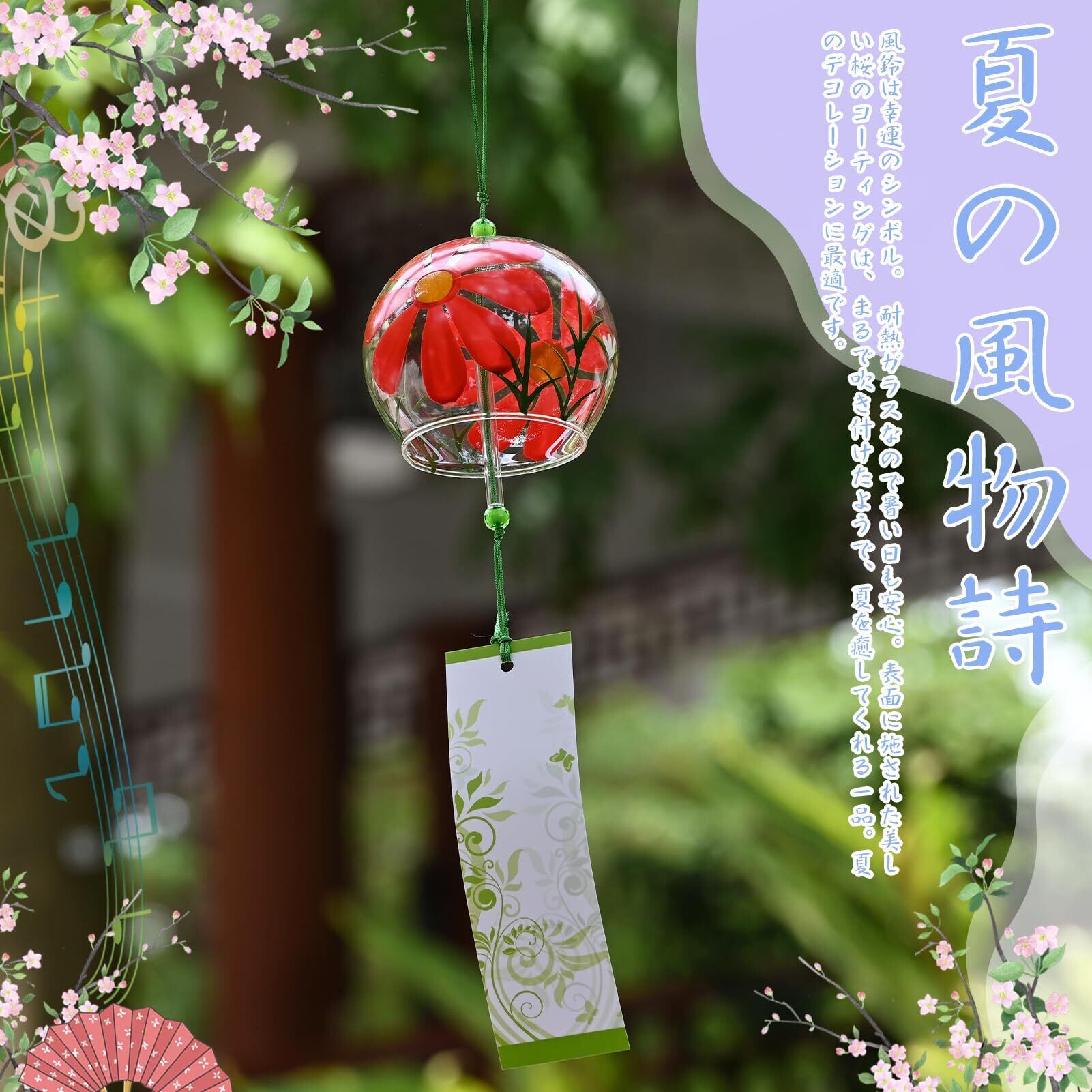 【良いプレゼント】ガラス素材は鮮明なサウンド、夏には涼しさを感じ、,だからそれは良い贈り物です、ガラス風鈴のパリッとした音は暑い夏を涼しげに感じさせてくれる。暑い夏のイライラ感を瞬時に無くし、より良い情緒安定の効果がある。