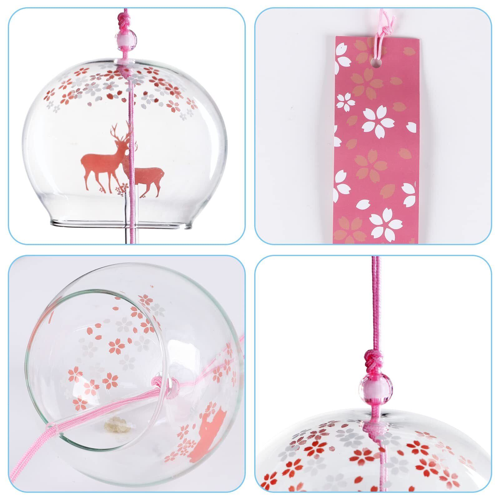 風鈴 夏の風物詩 ウィンドチャイム ガラス風鈴 江戸風鈴 癒しの音 和風 風鈴 おしゃれ 可愛い 涼しい ぶら下げ風鈴 4個セット(傘+花柄&鹿+花柄&猫+花火)手作り 飾り物 雰囲気作り 吊り飾り 屋根飾り おみやげ 祝福 贈り物 短冊付き | KSショップ