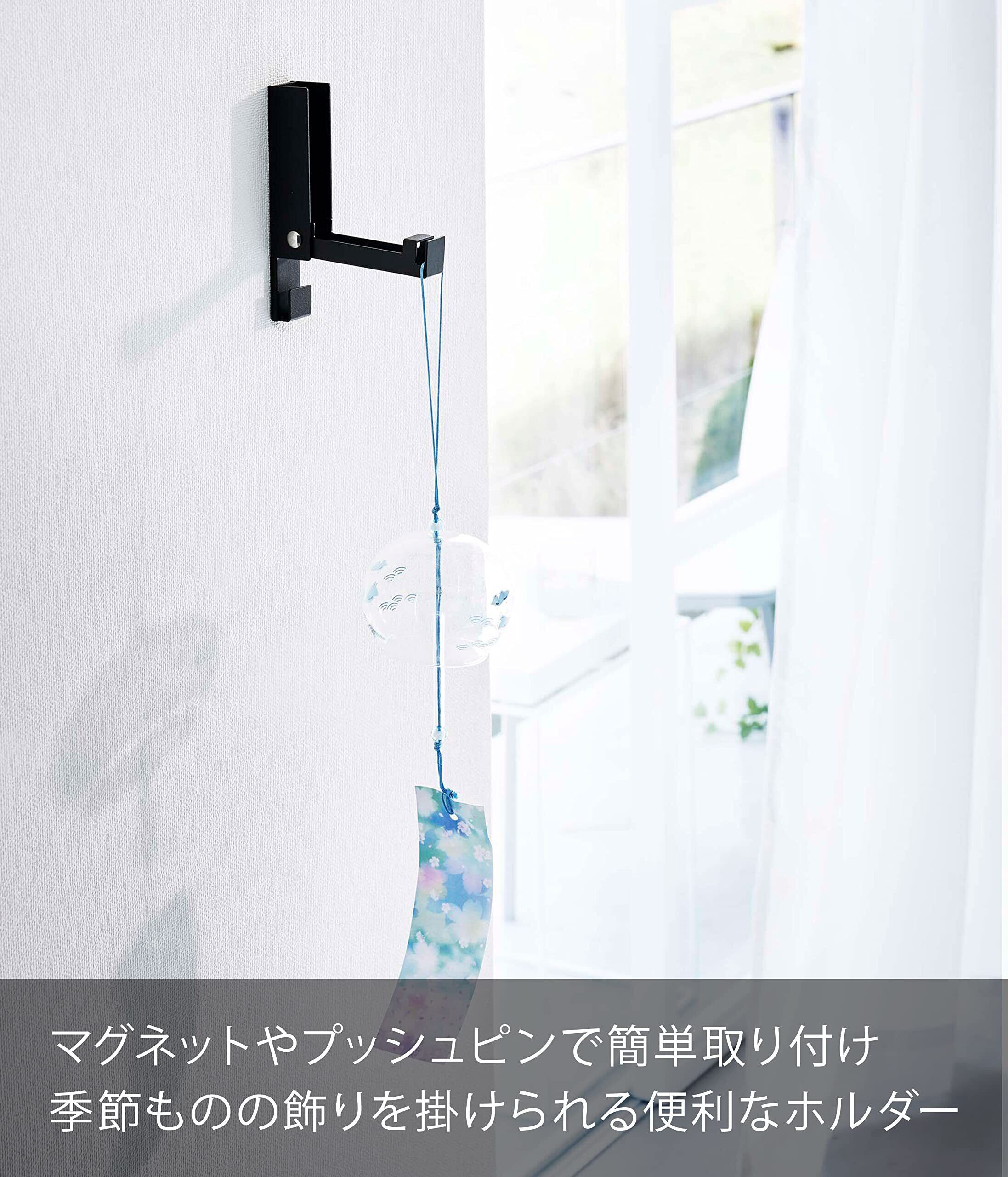 山崎実業(Yamazaki) 【 石こうボード用プッシュピン・マグネット 付属 】 風鈴 & しめ縄 ホルダー ブラック 約W2.4XD2.3XH11cm タワー tower マグネットで簡単取付 クリスマスリースかけ 正月飾りかけ 5743