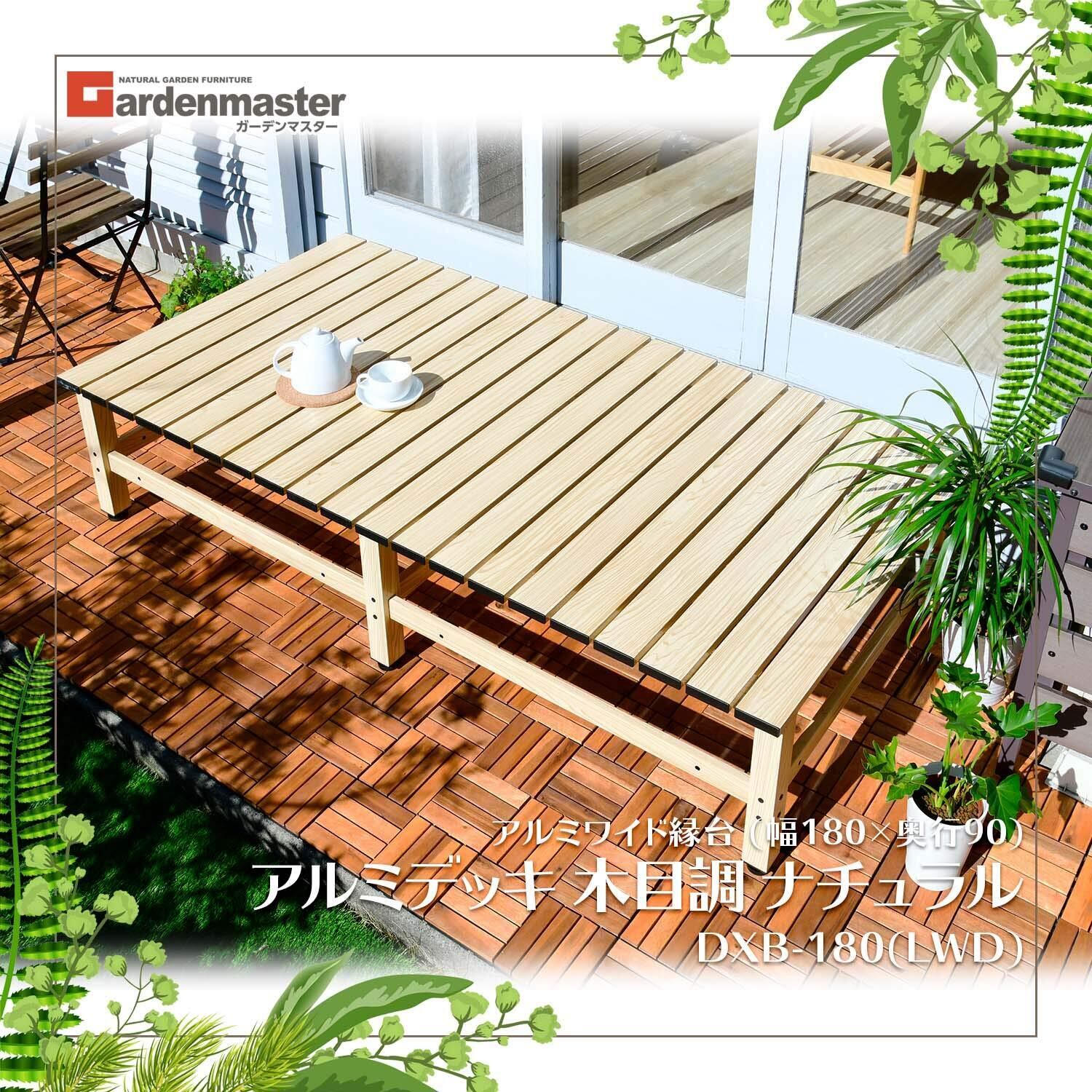 ガーデンマスター(Gardenmaster) アルミワイド縁台 幅180×奥行90×高さ40cm ガーデンベンチ ガーデンチェア バルコニー 軽量 踏み台 足場台 デッキ お庭 ガーデンマスター 木目調ナチュラル DXB-180