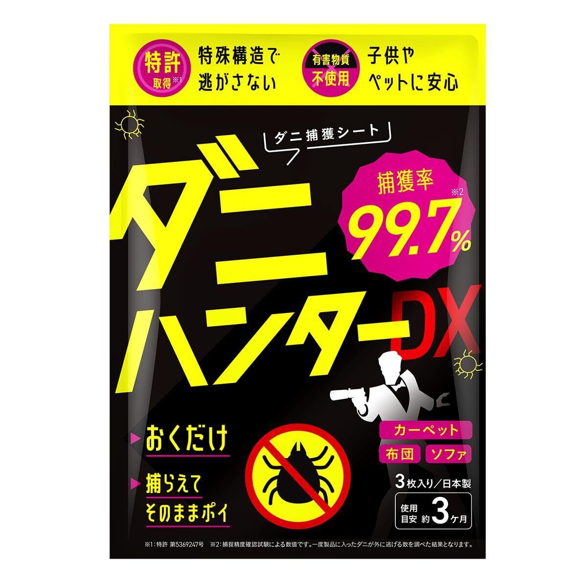 【ダニ取りシート】 99.7%閉込率 取得 駆除 対策 3枚入 3か月持続 置くだけ ダニハンターDX 日本製 布団 ベッド 赤ちゃん ペット 捕虫器