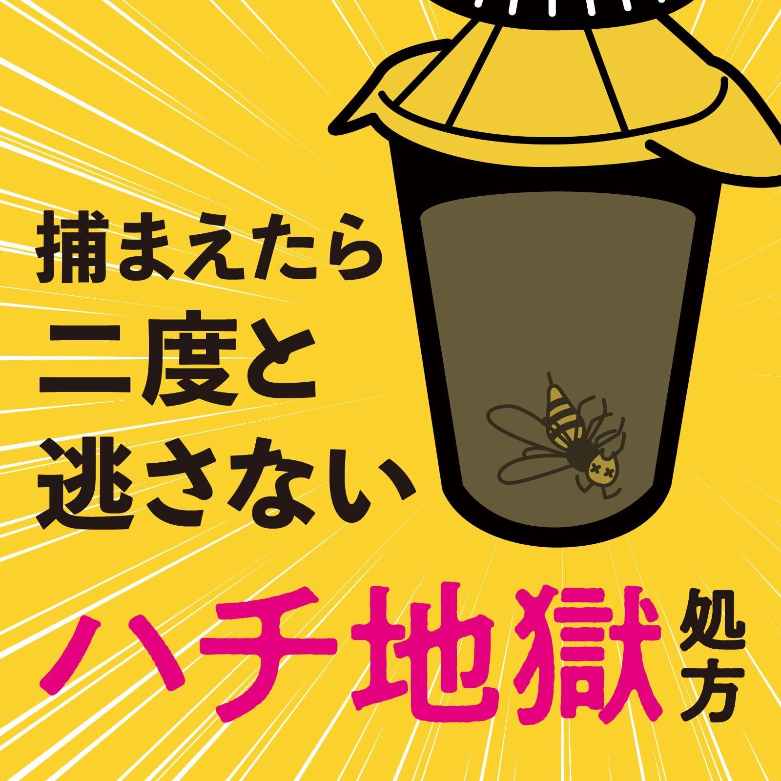 (4)逃さず沈む、入ったら2度と出られないハチ地獄処方:身体についたら即座に密着し、すばやく沈める誘引捕獲液で1度入ったら逃さない。※大型のハチは沈みません。