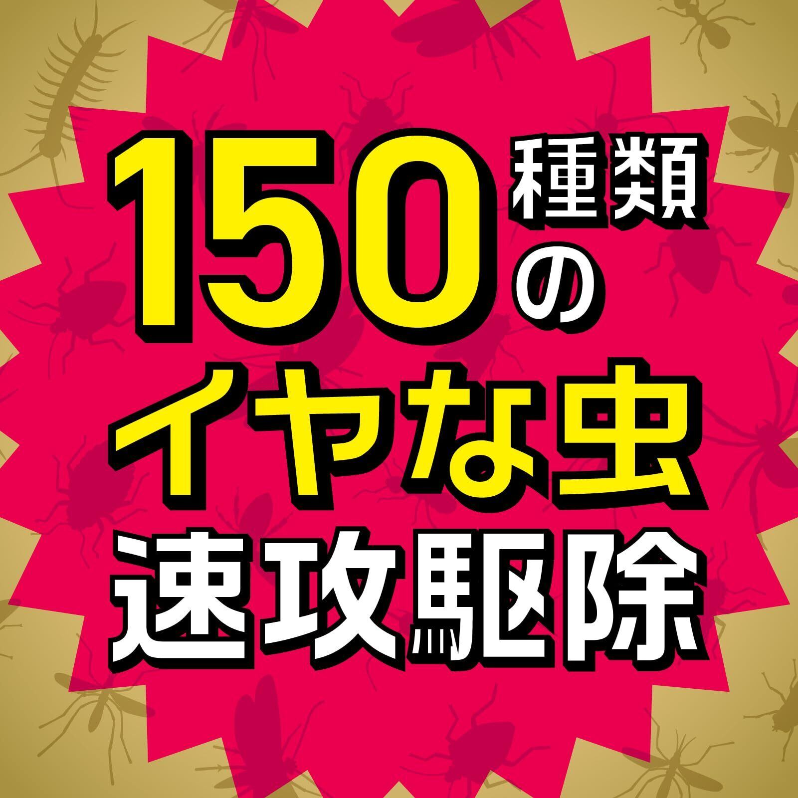 【適用害虫】ムカデ、ケムシ、クロアリ、クモ、ヤスデ、カメムシ、チョウバエ、アブ、ブユ、チャタテムシ、タカラダニ、シミ、シバンムシ、シロアリ、アリガタバチ、キクイムシ、ゲジゲジ、ハチ、ダンゴムシ、ユスリカ、セアカゴケグモ、ヒアリ、ガ、イエヒメアリ、イガ、カミキリムシ、カマドウマ、アカカミアリ、コイガ、ヨコバイ、ゴミムシダマシ、アルゼンチンアリ、ショウジョウバエ、シンクイムシ、ワラジムシ、カツオブシムシ、キノコバエ、ウンカ、アカアリ、ヒメマルカツオブシムシ、ハサミムシ、アオムシ