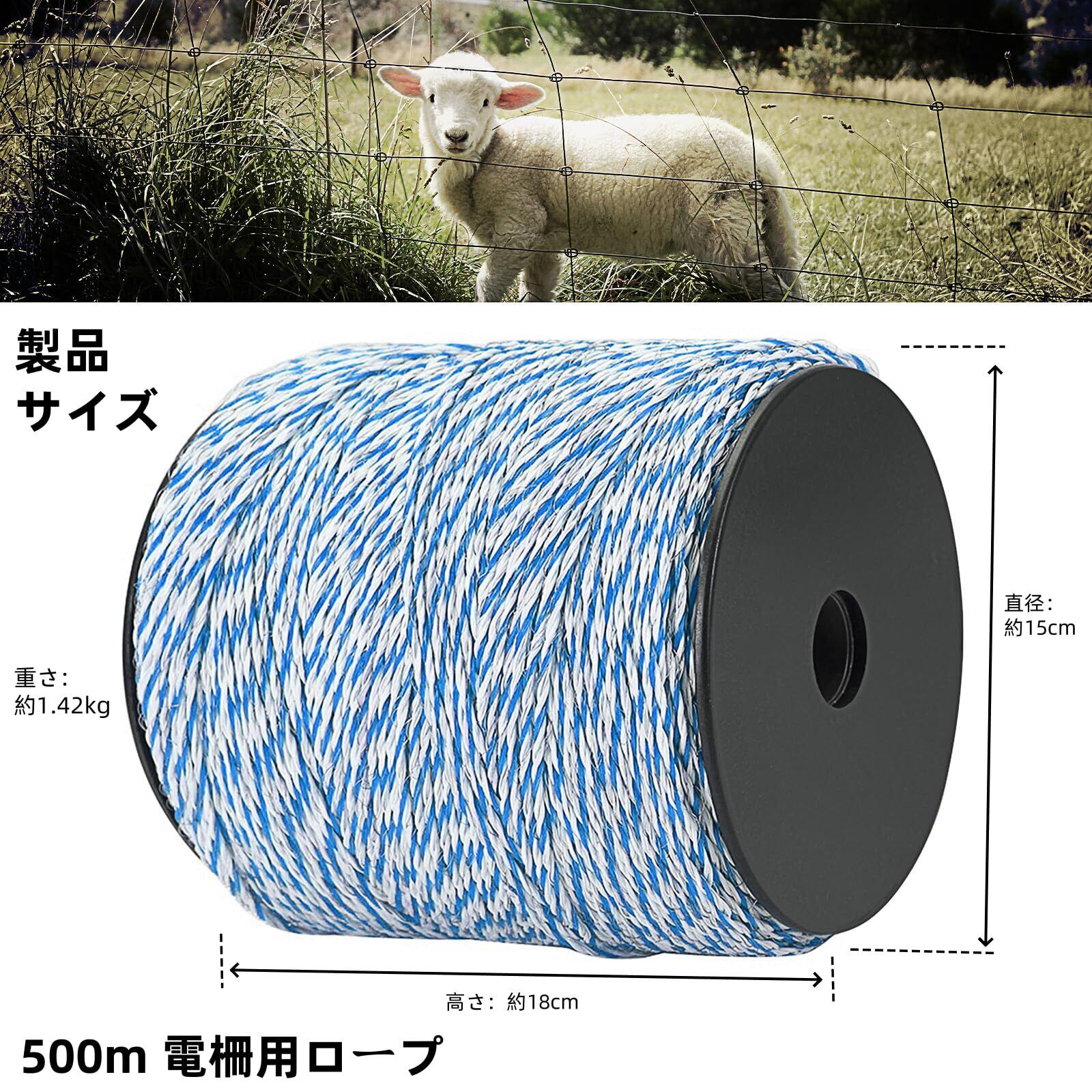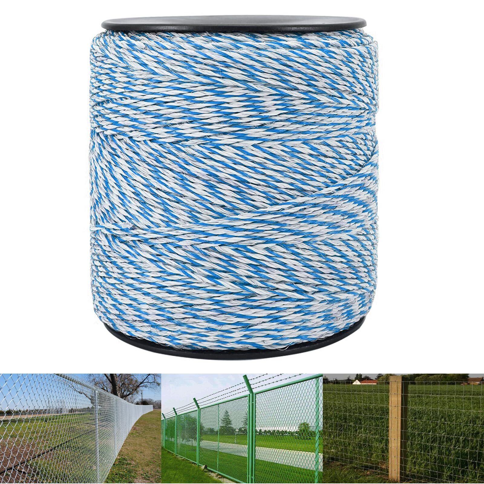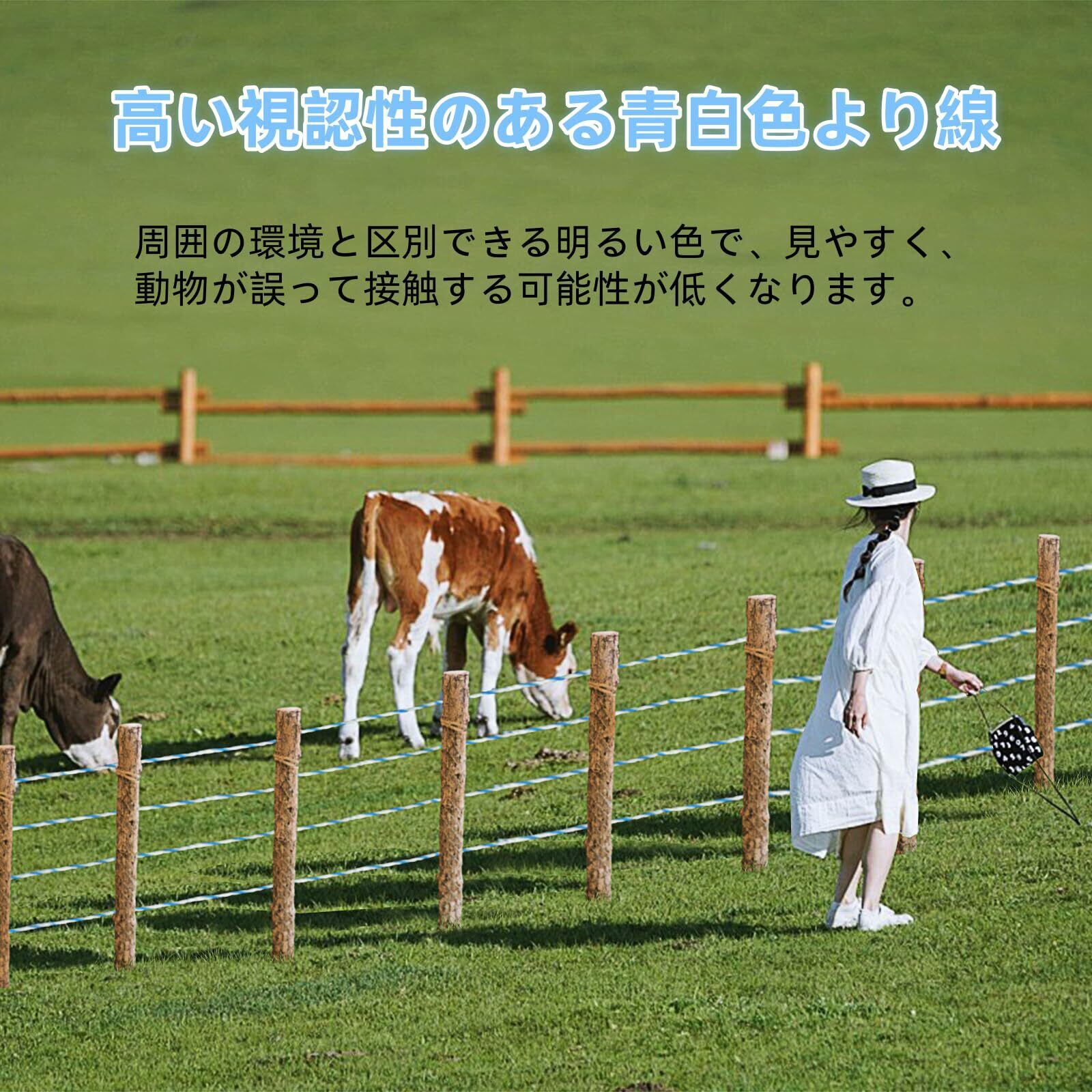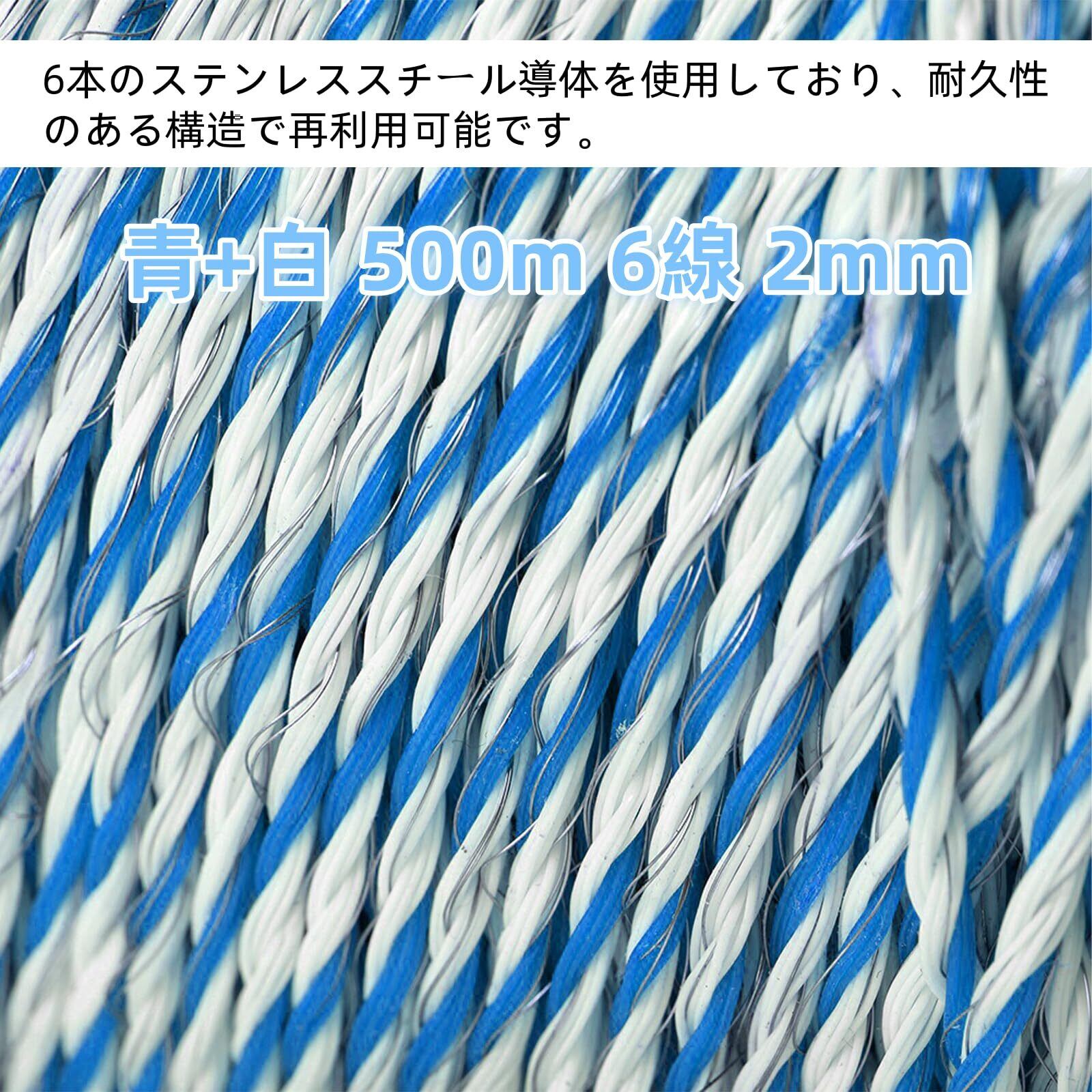 電気柵ロープ 500m 電柵線 青と白 2mm 6本撚り線 ステンレス鋼 電気柵ワイヤー 高導電率 強導電性 電気家畜フェンス 電柵ロープ 高い視認性 防錆性 耐紫外線 農場 牧場 馬 牛 牧羊犬用 家畜の保護 | KSショップ