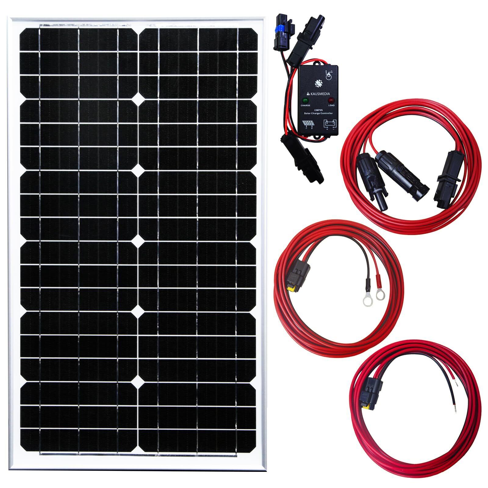 20Ah ディープサイクルバッテリー 12V, 30W ソーラーパネル 単結晶 アルミフレーム, 3m 防水コネクタ付 ソーラー延長ケーブル / バッテリー接続ケーブル / 出力ケーブル, 5A 防水… 表示を増やす