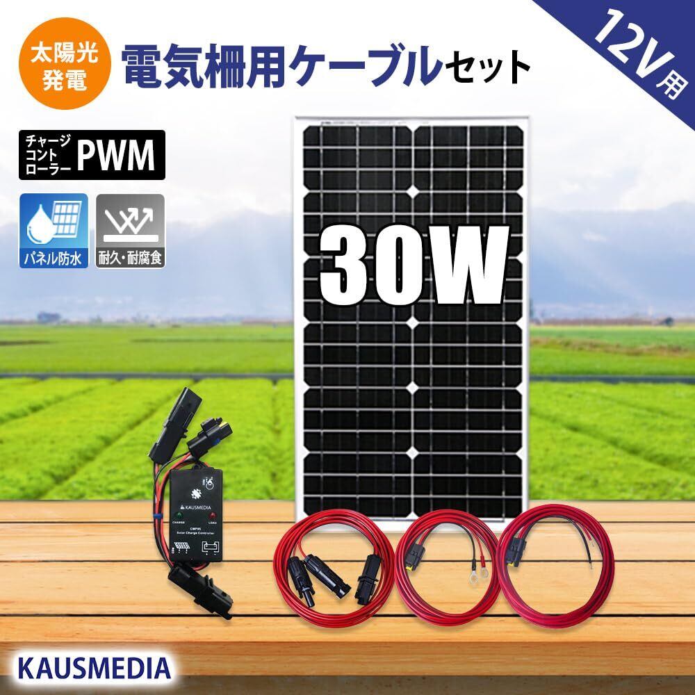 30W ソーラー充電 電気柵 外部機器 接続用 ケーブル付き セット 防水 12V 外部機器接続 イノシシ 害獣対策