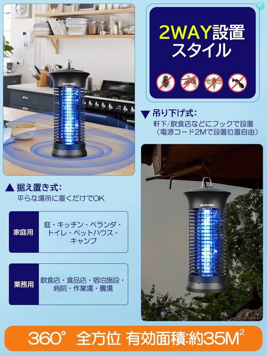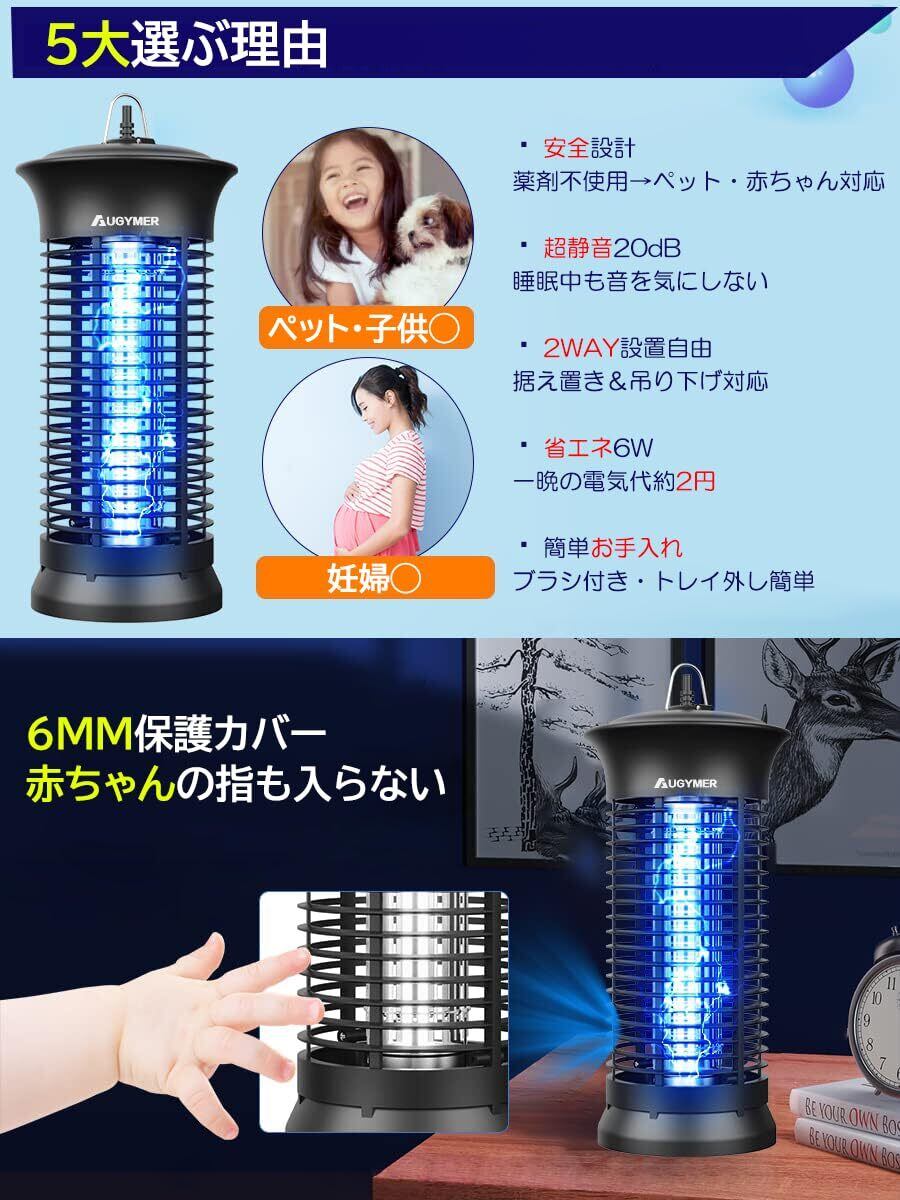 AUGYMER 電撃殺虫器 捕虫器 ライト コバエ取り機 こばえとり 2Mコード付き 360°強力蚊除け UVランプ 蚊取り器 蚊取り機 蚊よけ ハエ取り ハエとり器 蚊 対策 こばえとり コバエトリ 省エネ 薬剤不要 室内 寝室/居間/台所/玄関/居間/飲食店などに対応 お手入れ簡単 掃除ブラシ&用電球&日本語説明書付き