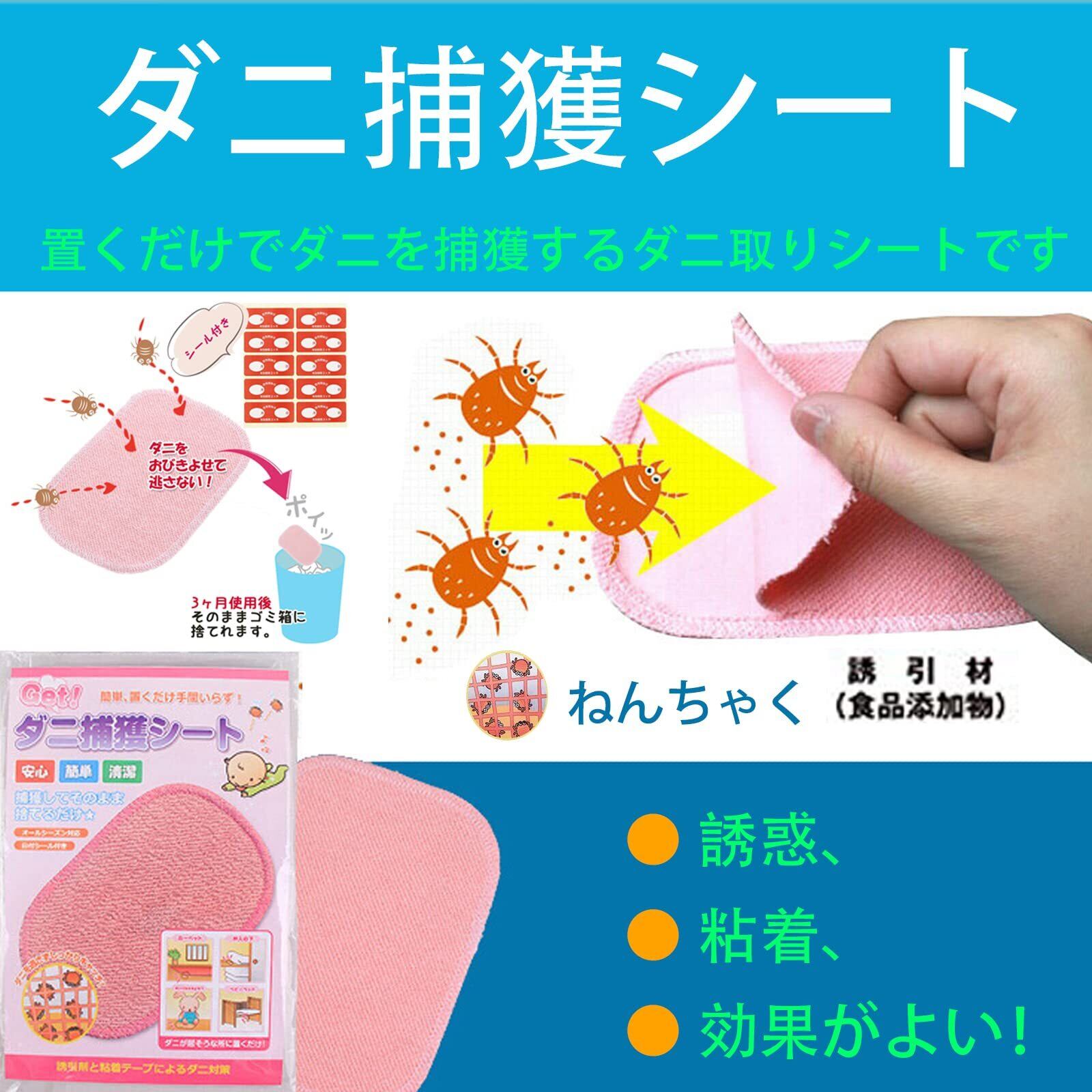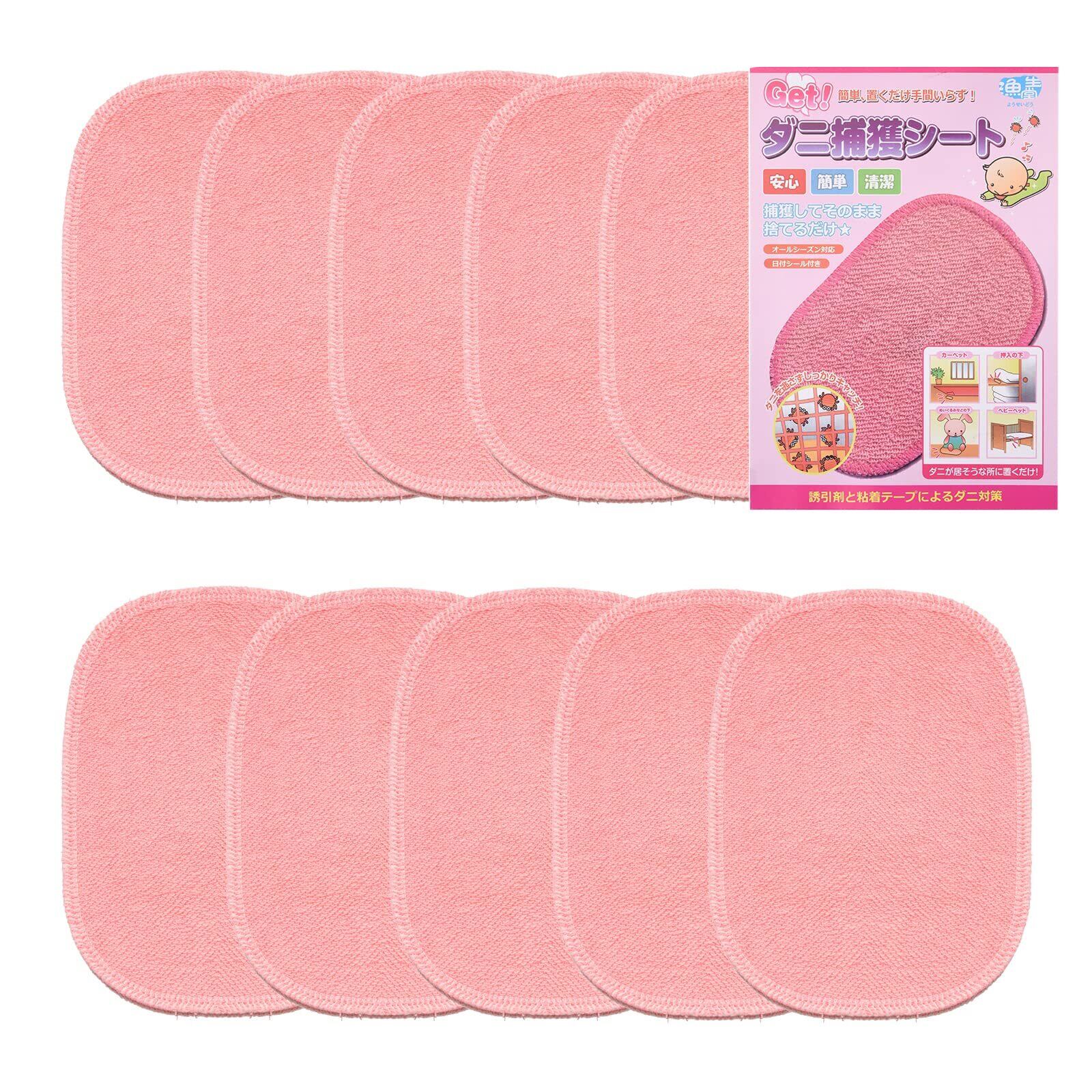 漁生堂 ダニ捕獲シート(10枚入)防虫・防ダニシート 寝具 布団 ダニ取りシート 、日付シール付き 殺虫剤不使用、置くだけ簡単 ピンク