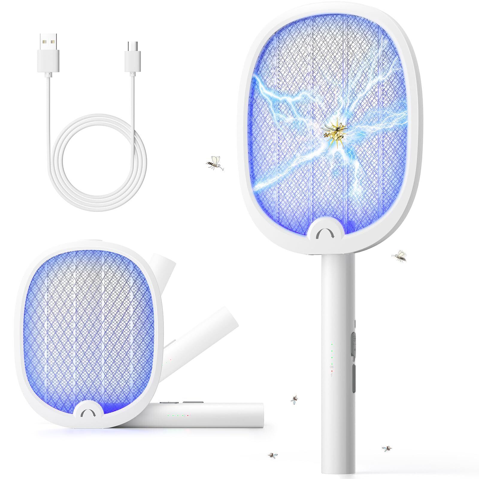 YISSVIC 電撃殺虫ラケット 折り畳み式 4000V高電圧で蚊取り 手持ちモード 誘引モード 充電式電撃殺虫器 3層構造ネット 薬剤不要で虫除け キャップ アウトドア 屋外と屋内で使用 (1枚, 白)