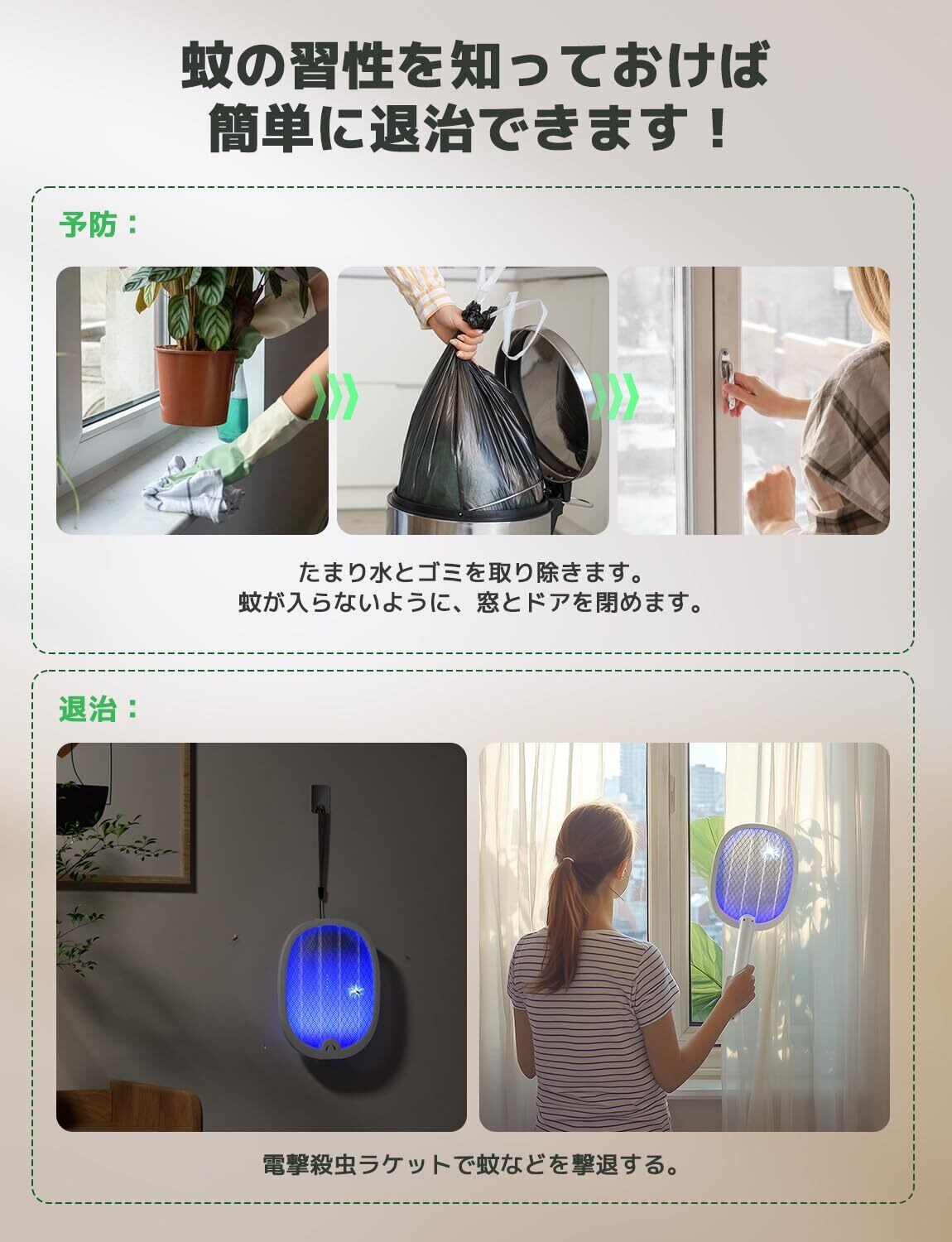 4000V高圧電撃:4000V超強力電流が流れ、軽く振るだけで電網に接触したハエや蚊やブヨなどを簡単に退治できます。庭、寝室、居間、台所、ホテル、キャップなどに最適、快適な虫のいない空間を手軽に実現できます。
