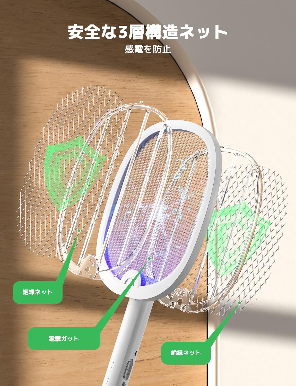 YISSVIC 電撃殺虫ラケット 折り畳み式 4000V高電圧で蚊取り 手持ちモード 誘引モード 充電式電撃殺虫器 3層構造ネット 薬剤不要で虫除け キャップ アウトドア 屋外と屋内で使用 (1枚, 白) | KSショップ