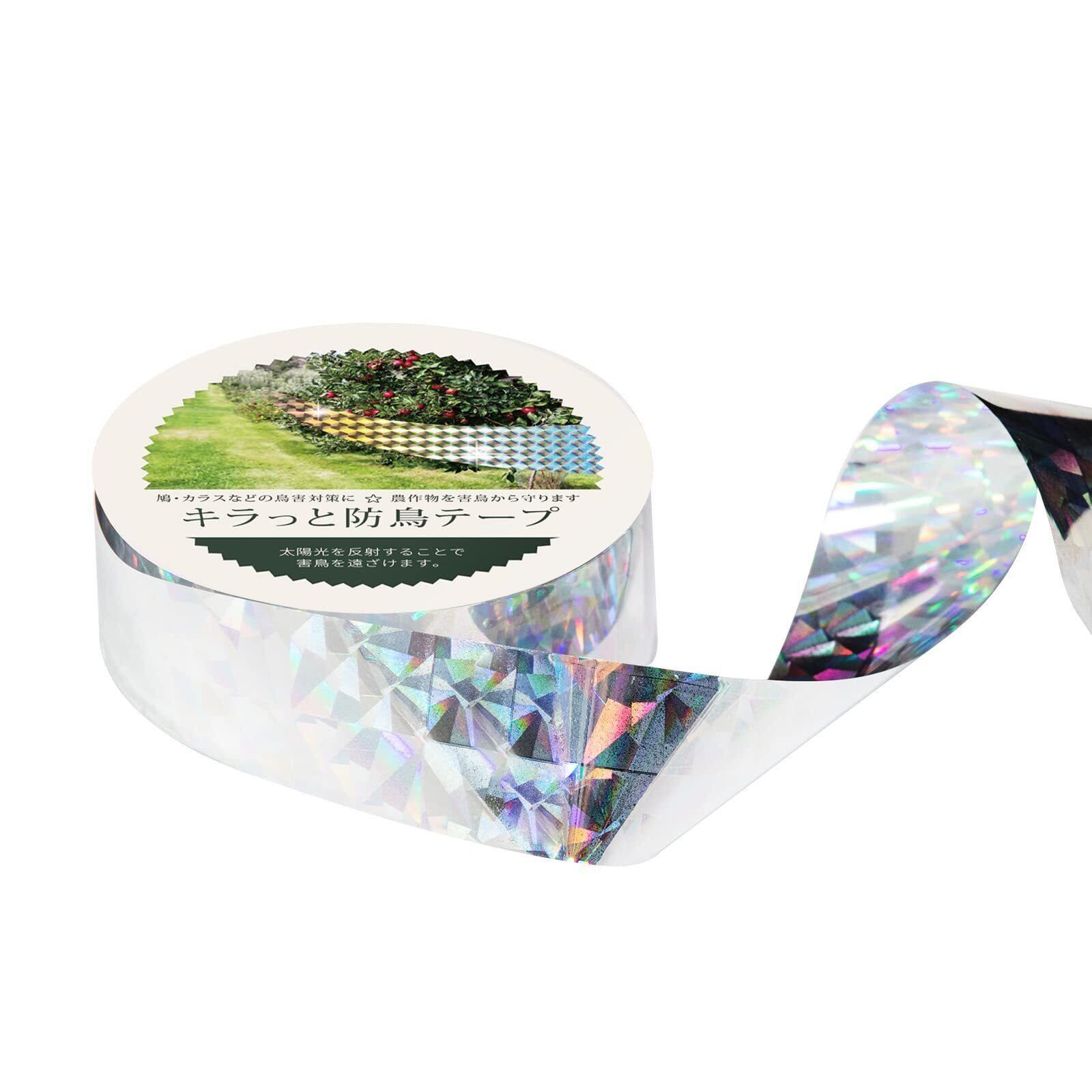 OFFO 鳥よけ キラキラテープ 100.6m 長さ25%増量スズメ追いの両面反射ホログラムテープ 幅2.4cm 太陽光を強く反射することで鳥を脅かして寄せ付けません 畑の稻や野菜などを鳥から守る ベランダフン害防止・景観を損なわず銀キラホログラムシート 軽くて取付簡単 畑/家庭菜園/果樹園/お庭/ベランダのスズメ対策・カラスよけ・鳩よけに大活躍 1巻入 | KSショップ