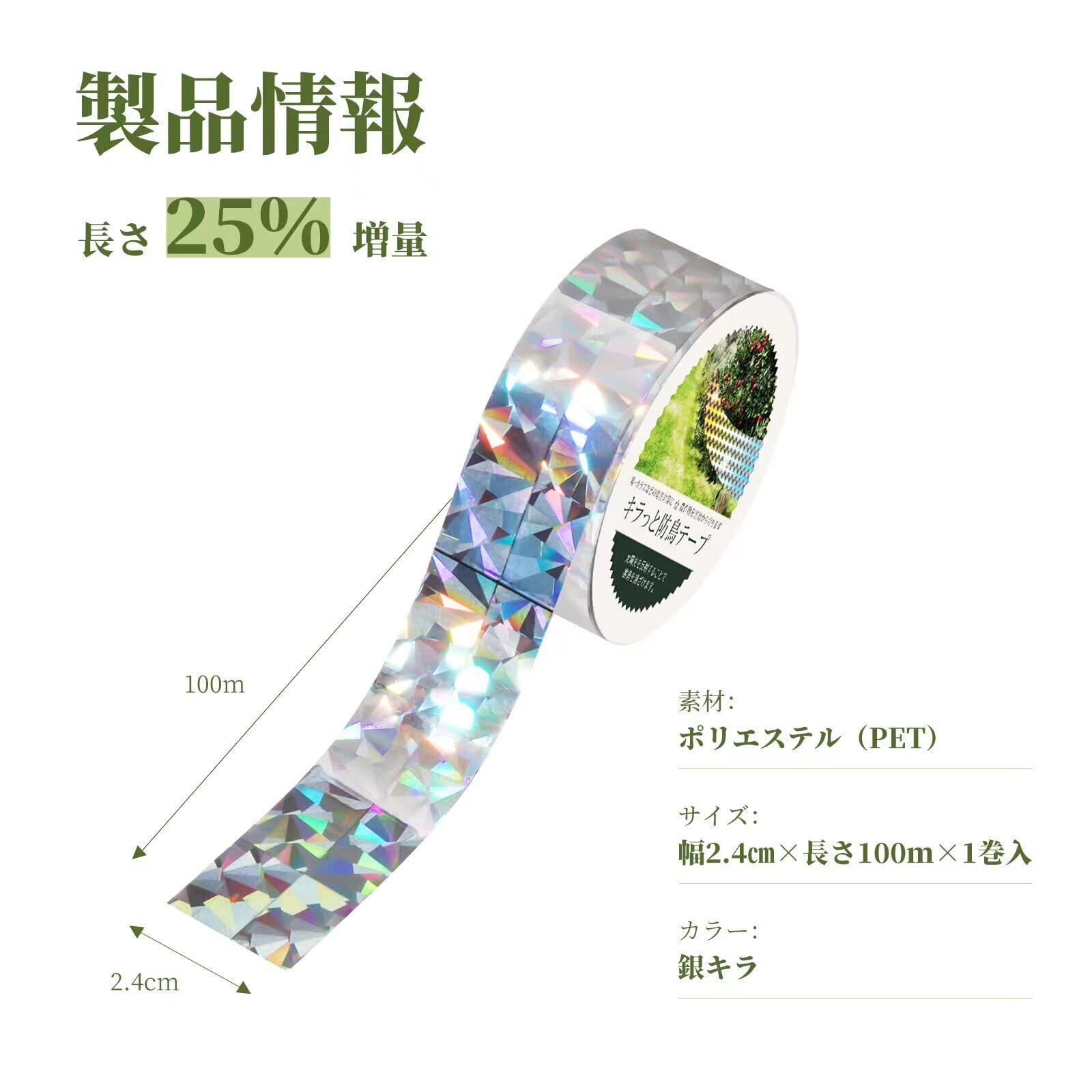 [長さ25%増量] 長さ100m巻きでボリュウムが多くて使いやすいです。ハサミでお好みの長さに切りキラキラと風になびくように結ば鳥が寄せ付けません。