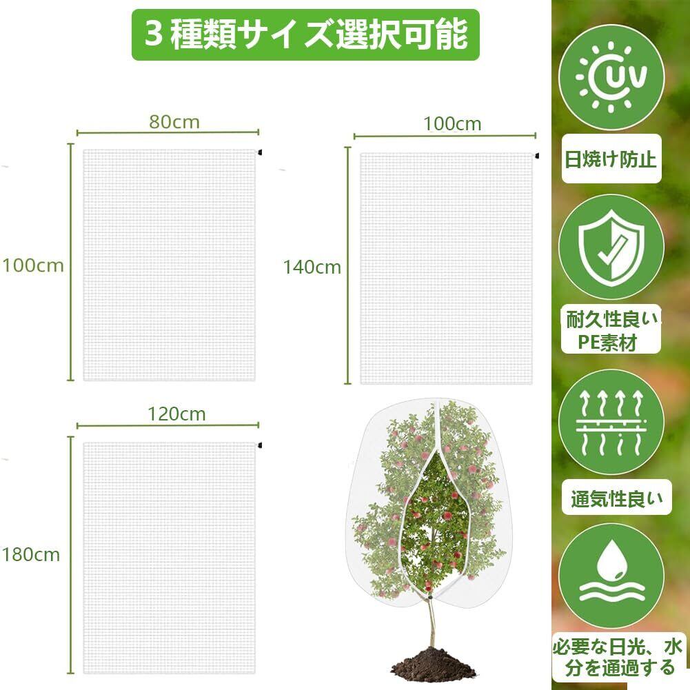 【ファスナー付き植物保護カバー】防虫ネット プランター のサイズは幅100cmx高さ140cmで、植物全体をカバーするのに十分なので、果物ごとに袋に入れる必要はありません。セット内容:2枚入り、色:ホワイト。また、様々な寸法の鳥よけ ネット 園芸ネットも提供しており、植物に最適なものをお選びいただけます。