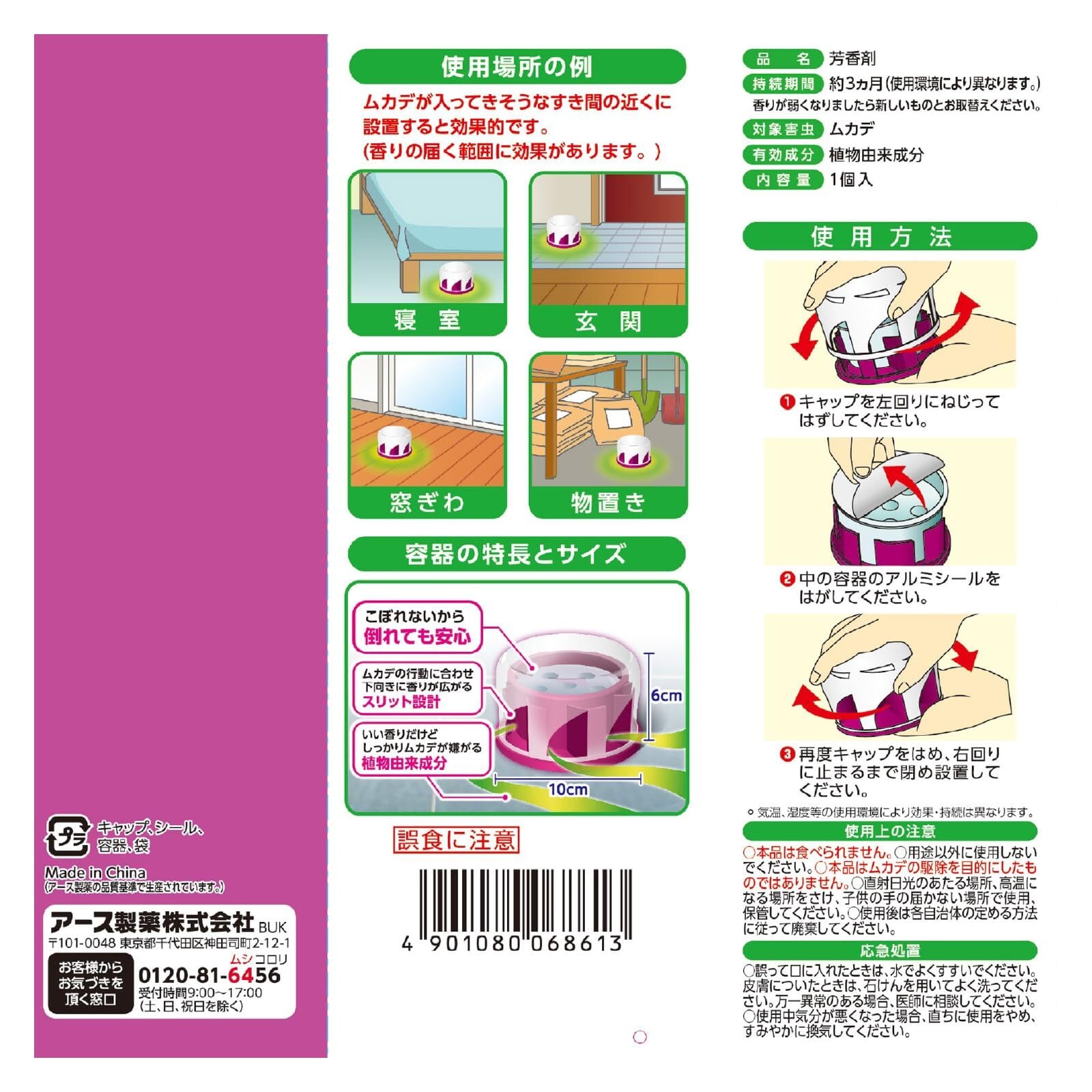 ●本品はムカデの駆除を目的にしたものではありません。