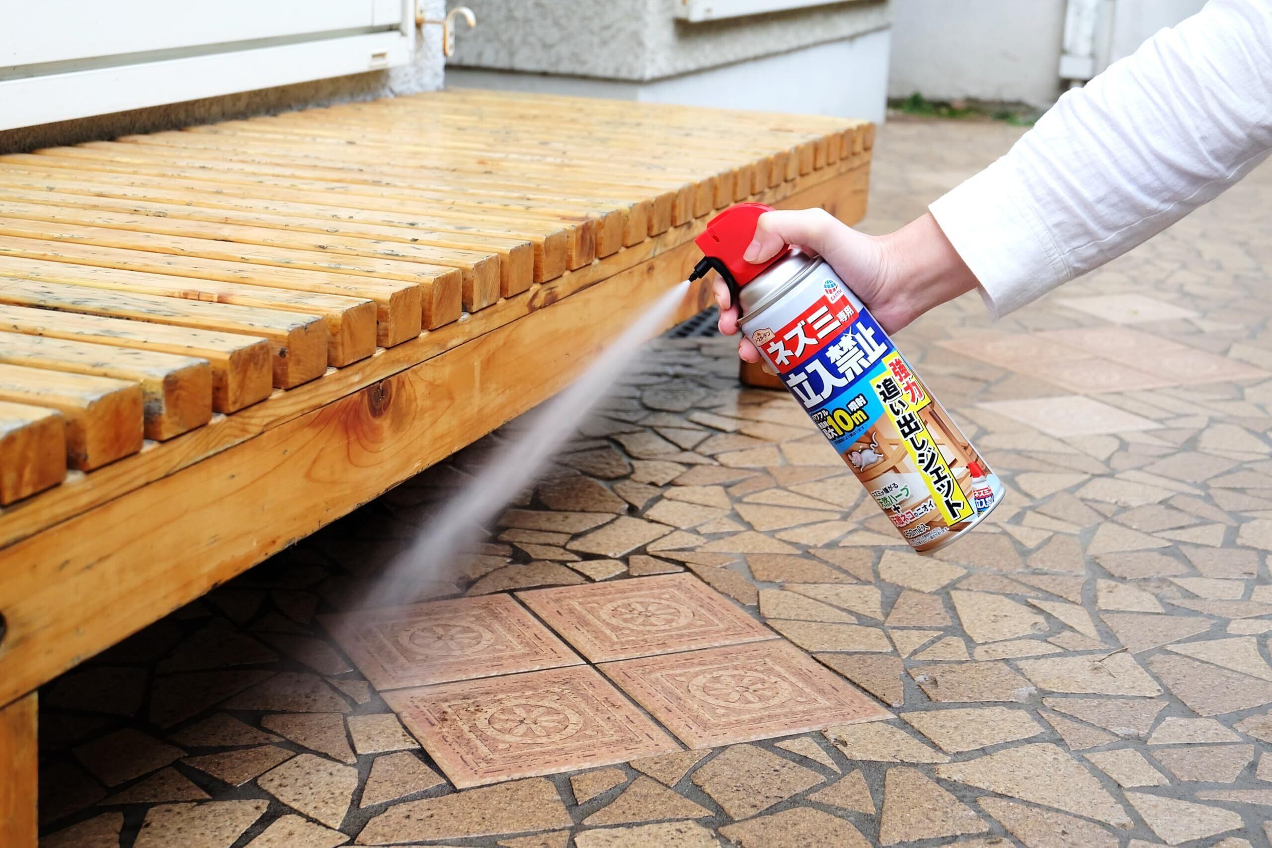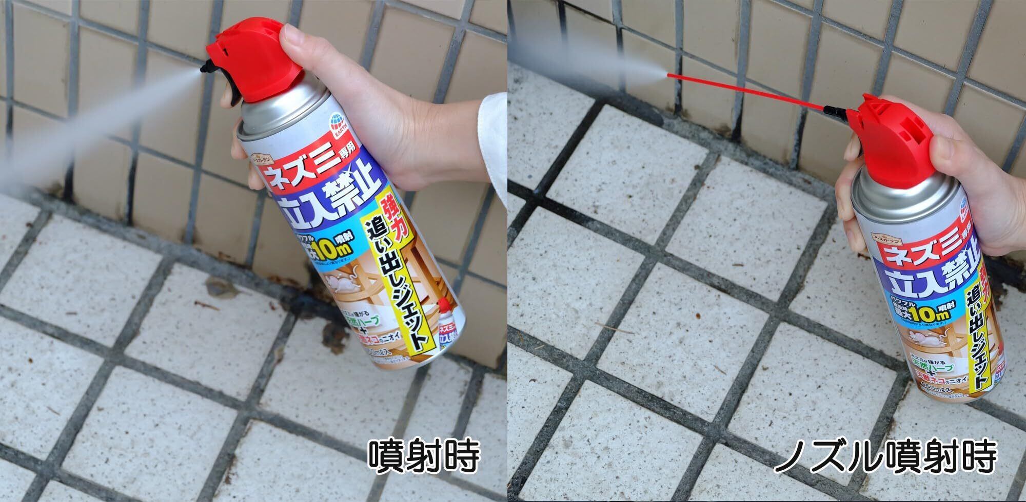 ●使用前に缶をよく振って、天井裏や床下通風口などネズミの通路や侵入口に1平方メートルあたり2秒噴射してください。