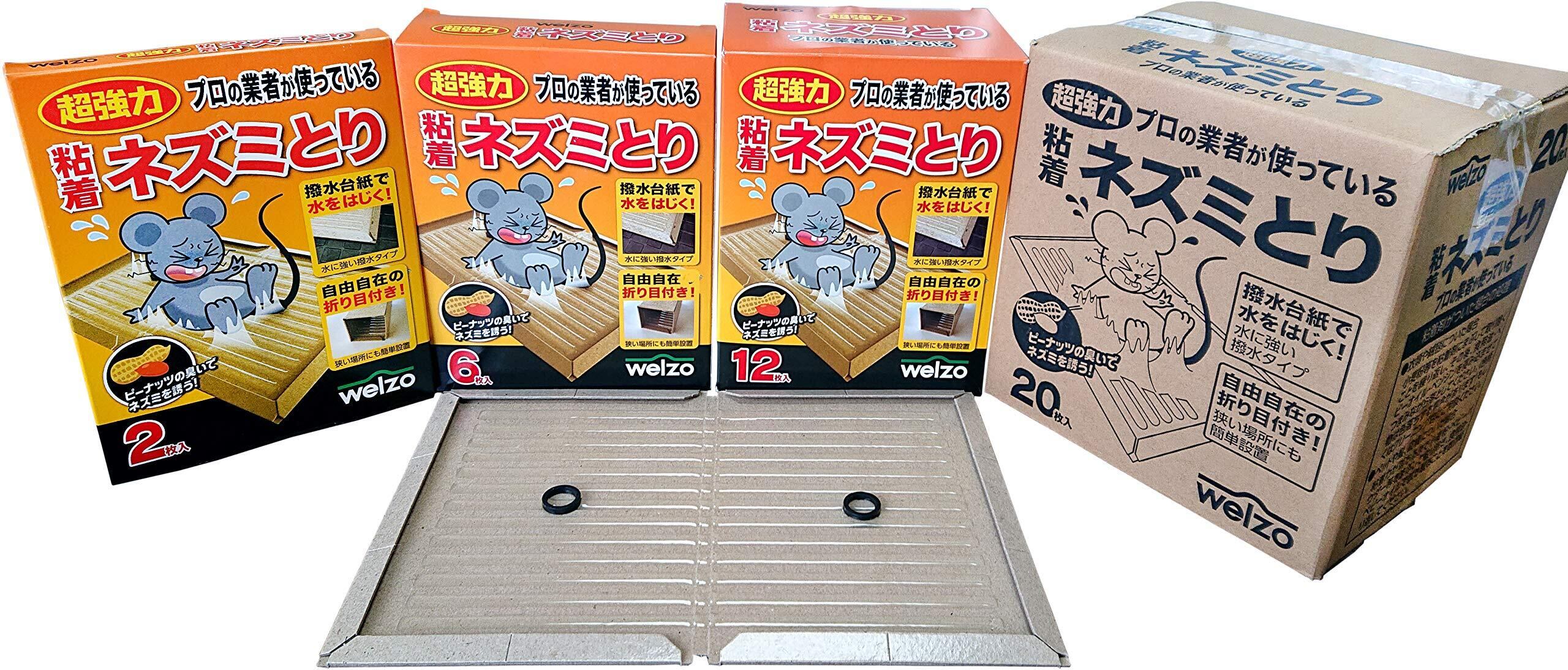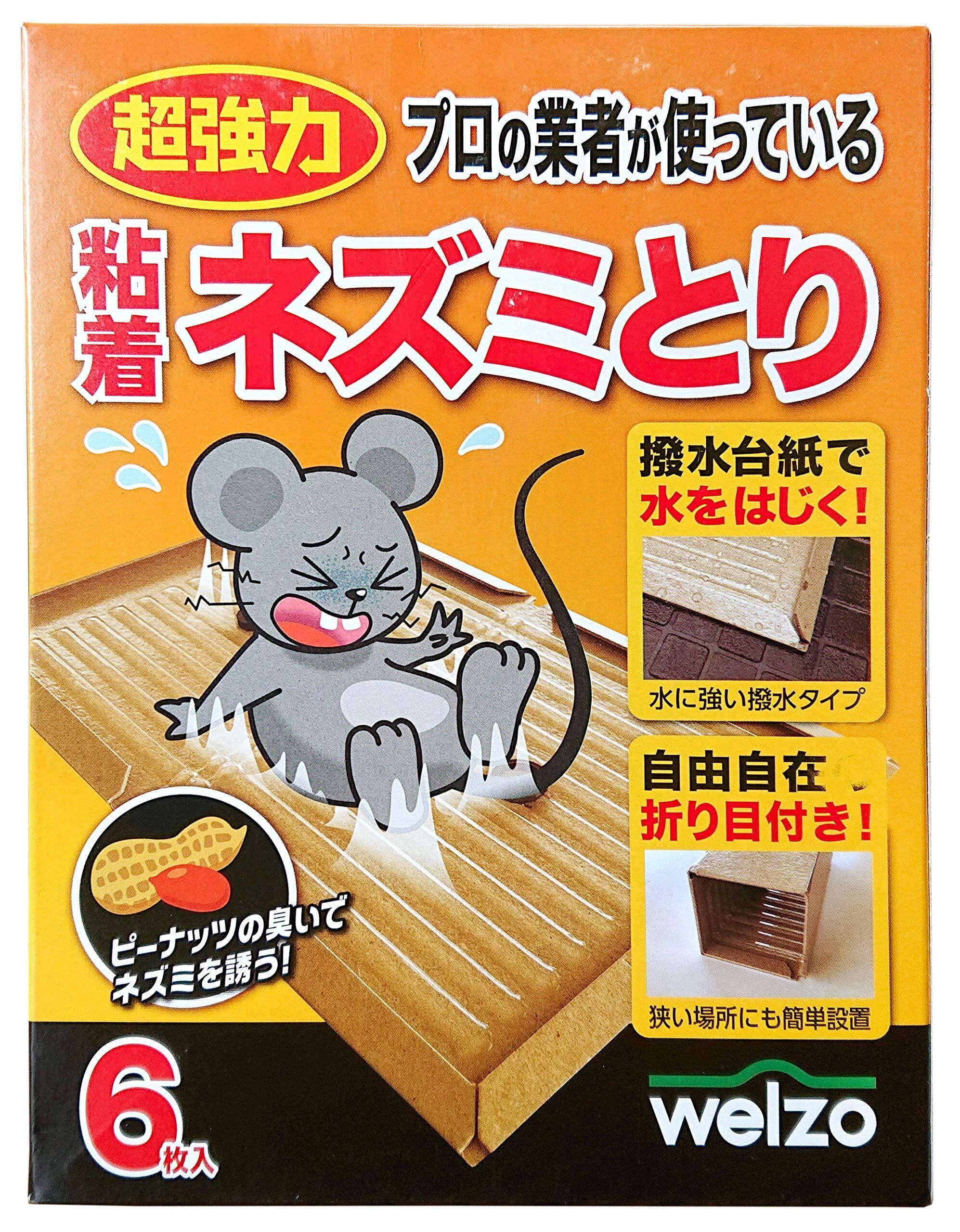 ウェルゾ(Welzo) 粘着ネズミとり 6枚 【プロの業者が使っている】【撥水台紙で水をはじく】【ピーナッツの臭いで誘う】【キッチン周りやゴミ置き場に】ネズミ取り 鼠取り 駆除