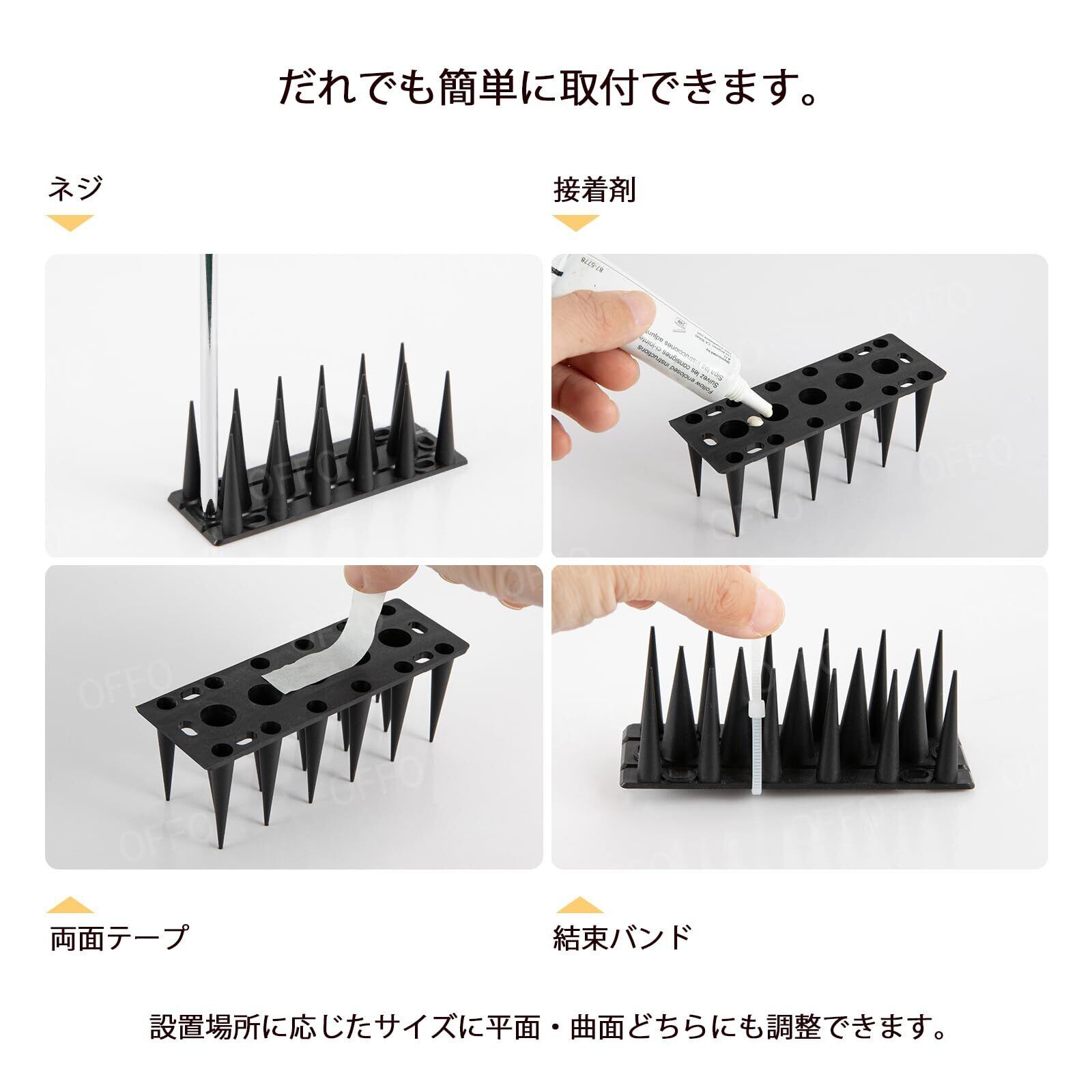 OFFO 鳩よけ 鳥よけ とげ高3.6cm 鳥よけグッズ 自由カット 針が密集するとりよけグッズ とげ高仕様 景観を損なわずフン害防止・ベランダ・屋上・手すり・庭栅用防鳥対策品 日本語取扱説明書付き 10cm×12本入り(全長120cm) ブラック | KSショップ