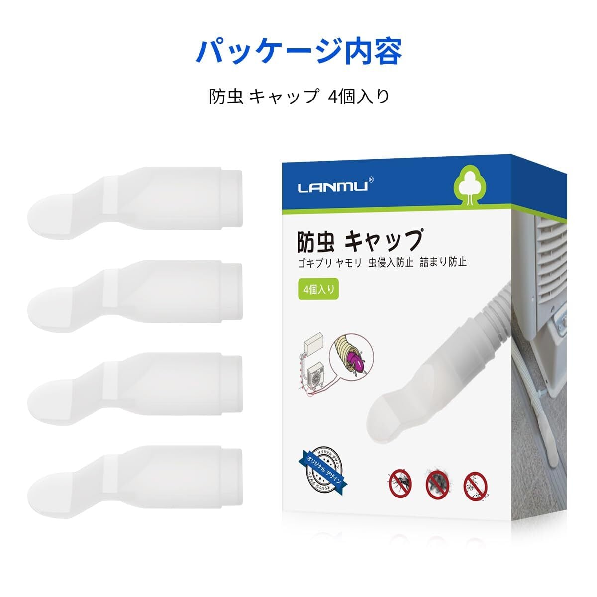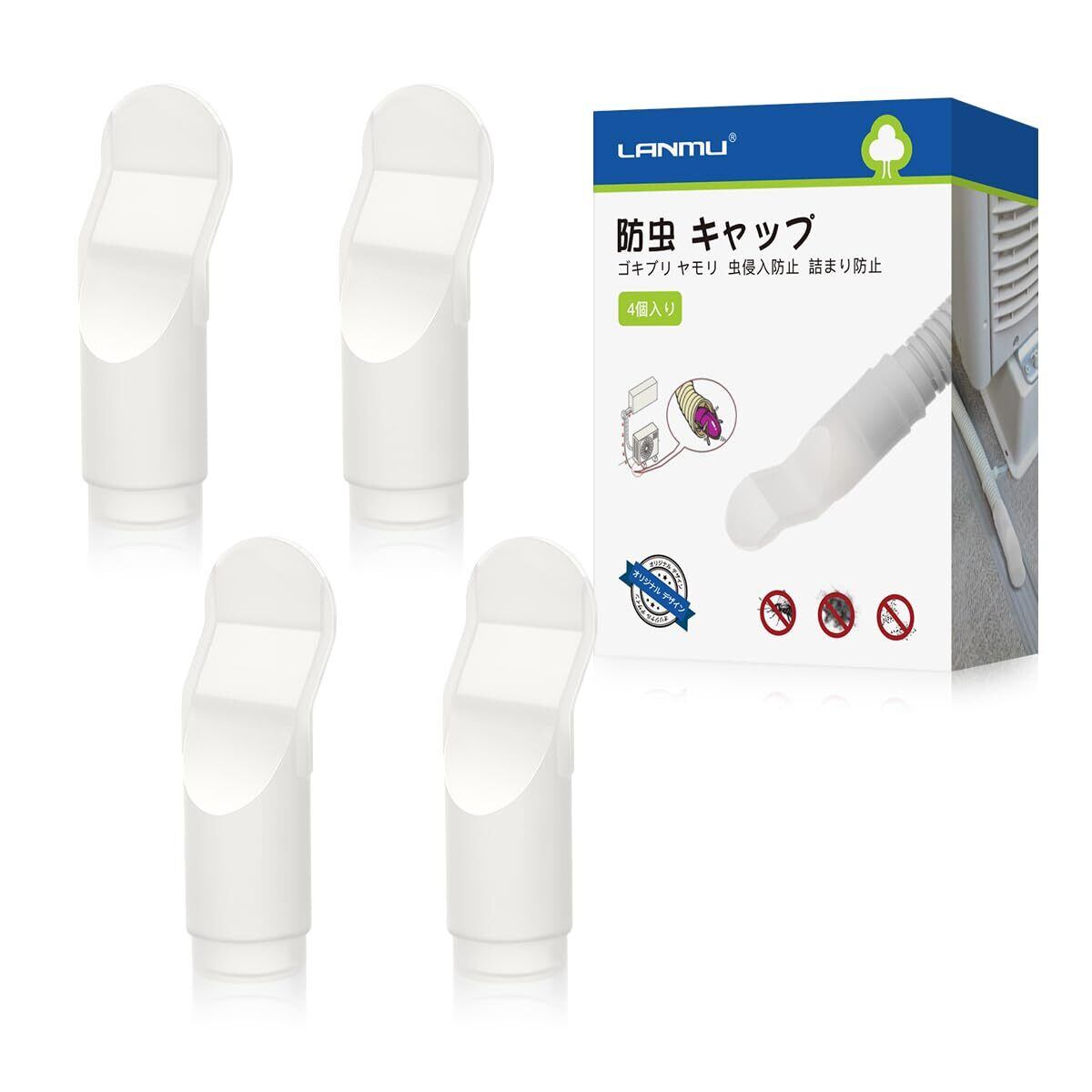 LANMU 防虫 キャップ 4個入り 透明 シリコン ドレンキャップ エアコン ドレン ホース 防虫 室外機 キャップ 虫侵入防止 虫対策 詰まり防止 かめむし対策 中