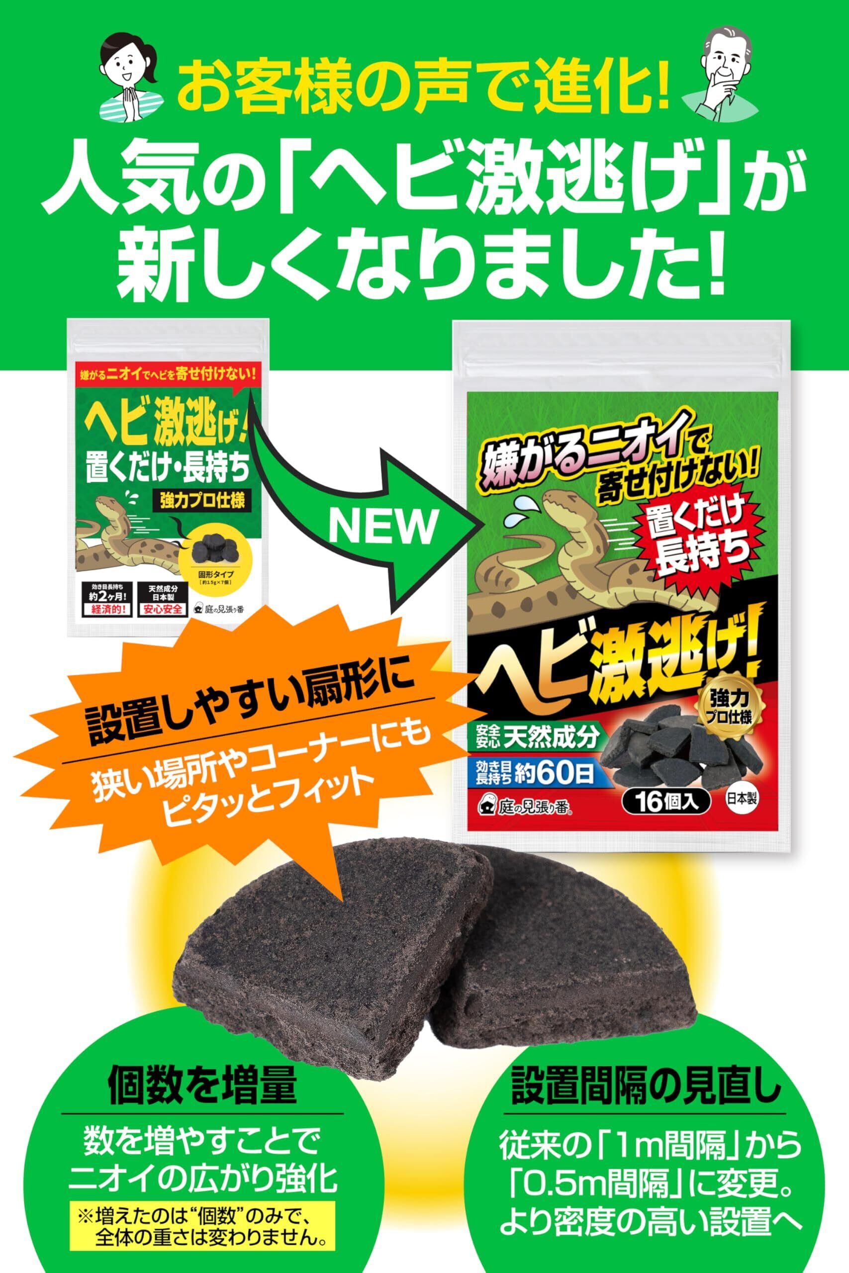 庭の見張り番 ヘビ激逃げ! へびよけ 蛇よけ剤 屋外 ヘビ 忌避剤 置くだけ簡単【強力プロ仕様・天然香料で安心・効き目長持ち約2ヶ月】16個入/3.5〜7m分