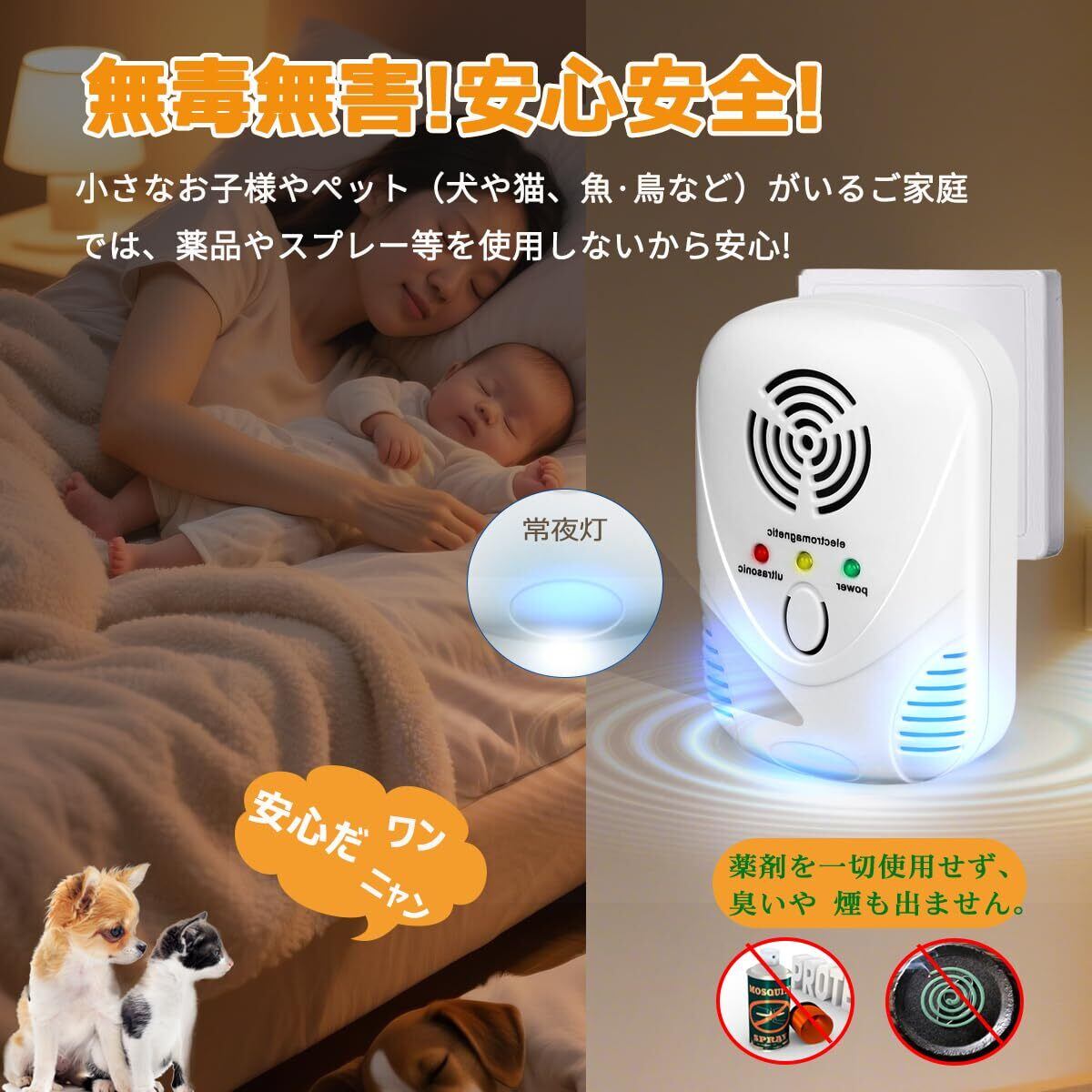 【2個セット】【新改良】ネズミ 駆除 超音波 虫除け 強力 撃退 ゴキブリ対策 害虫駆除器 【電磁波+5種類超音波+圧力波+常夜灯】230畳有効範囲 自動変換周波数 360°全方位カバー 蚊/虫/アリ/ハエ/ノミ/クモ/ハチ/コウモリなどに対応 省エネ 静音無毒 子供やペットに安心