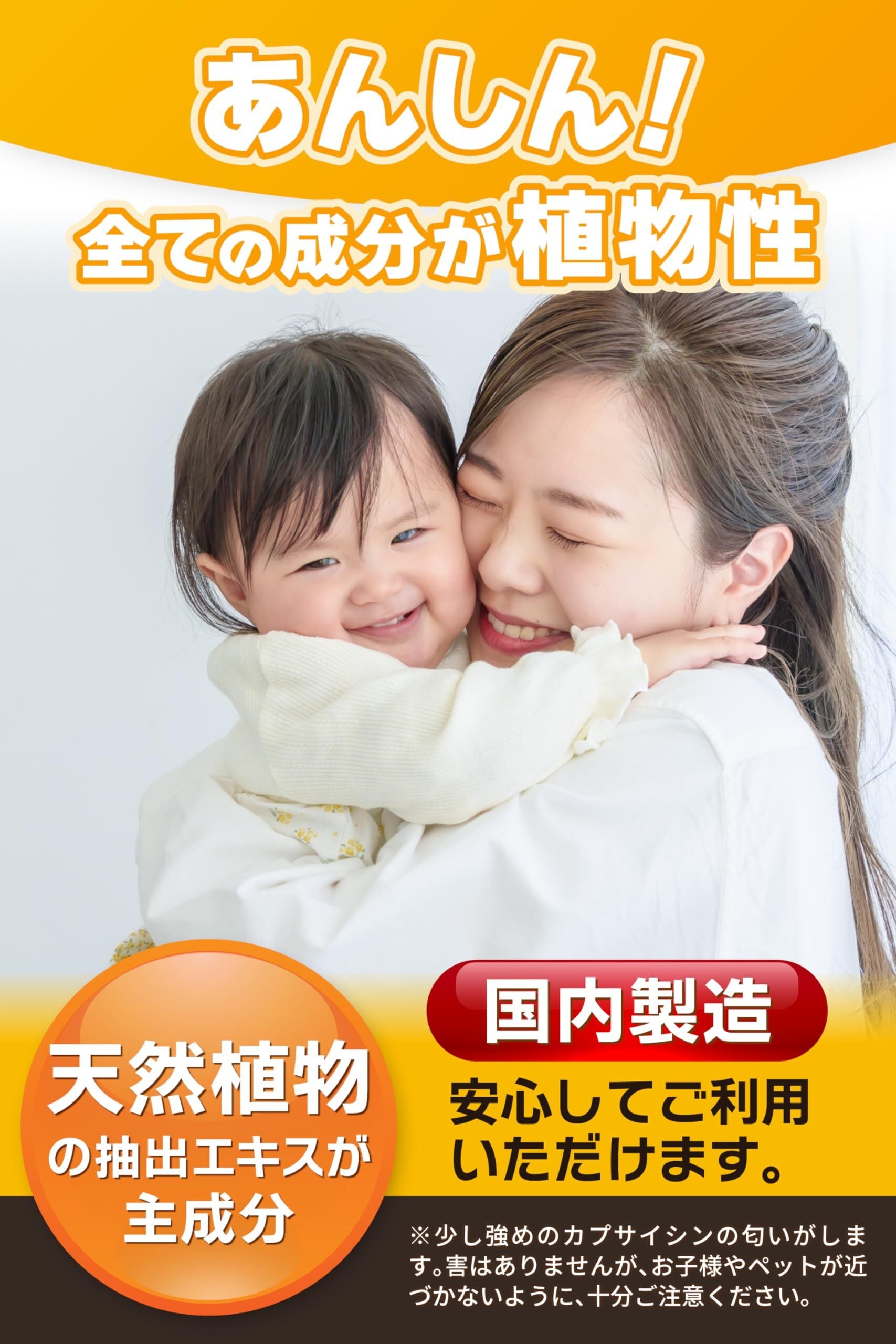 【天然香料で安全安心・国内製造】子供やペットへの影響がない植物由来の安全成分。人には優しくイタチを寄せ付けない環境を作るイタチよけ忌避剤です。徹底的に品質管理された国内工場で製作しておりますので、安心してご利用いただきます。