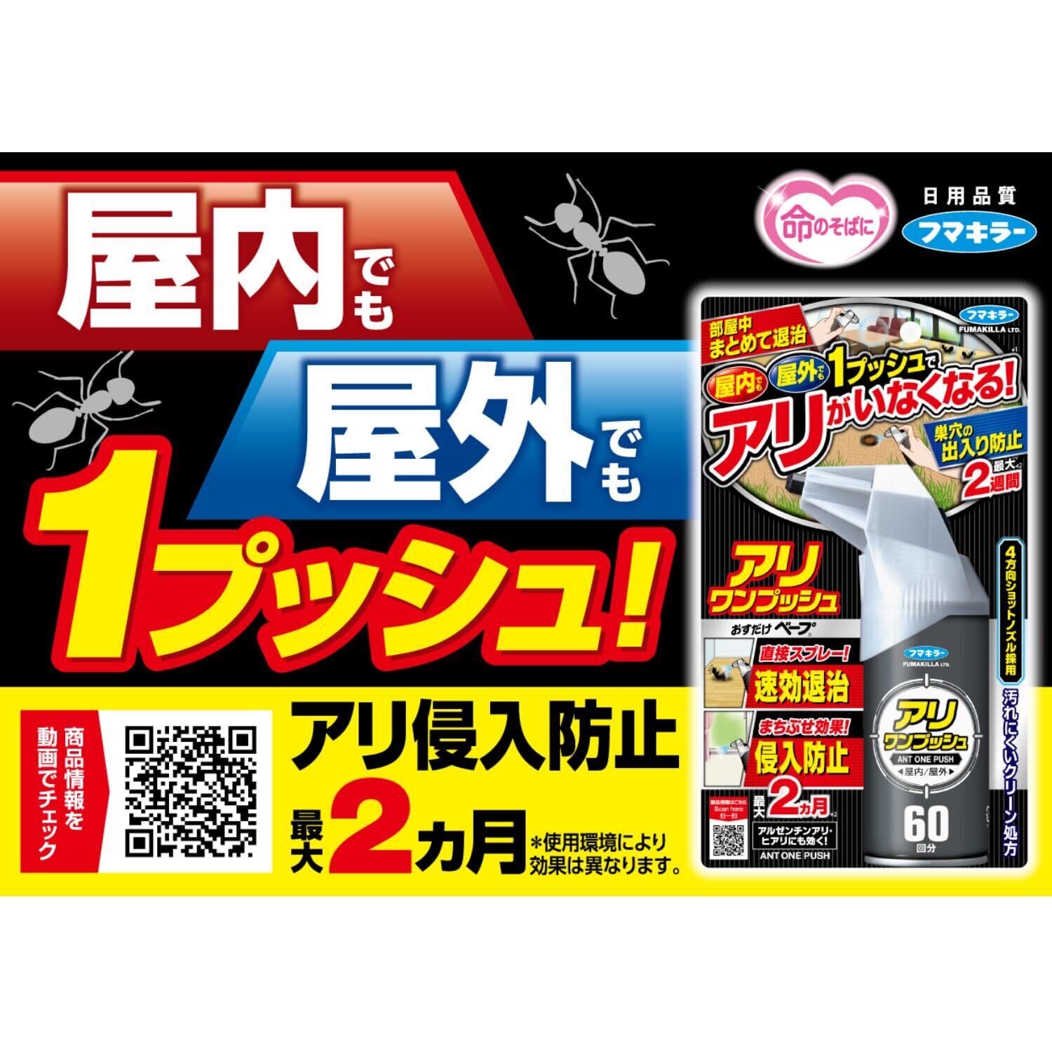 フマキラー アリ アリワンプッシュ 約60回分 スプレー 蟻 駆除×2個【まとめ買い】 ヒアリ適用