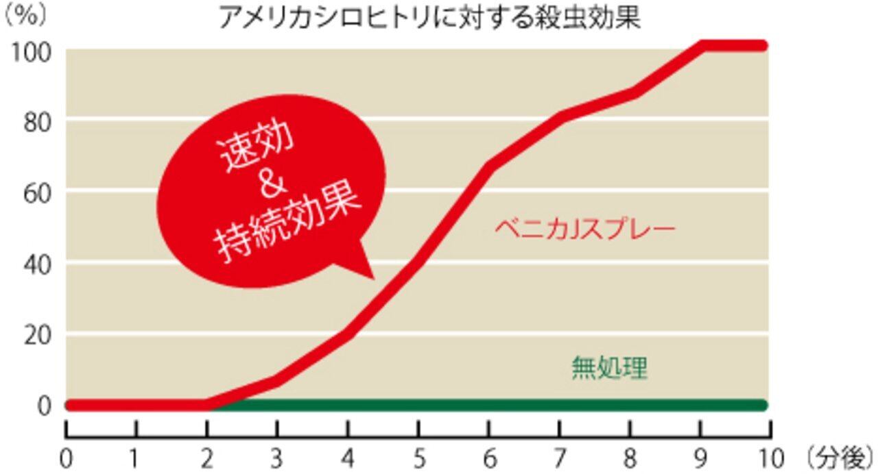 ・ケムシには速効性と1週間の持続性(チャドクガ、アメリカシロヒトリ・若齢幼虫)があり、散布後に発生した害虫も退治