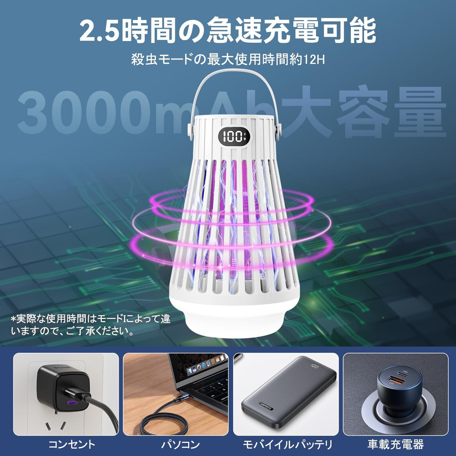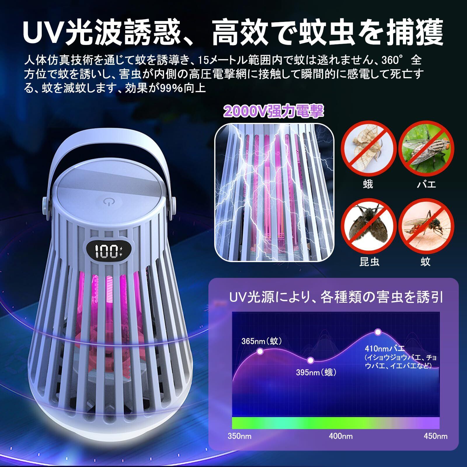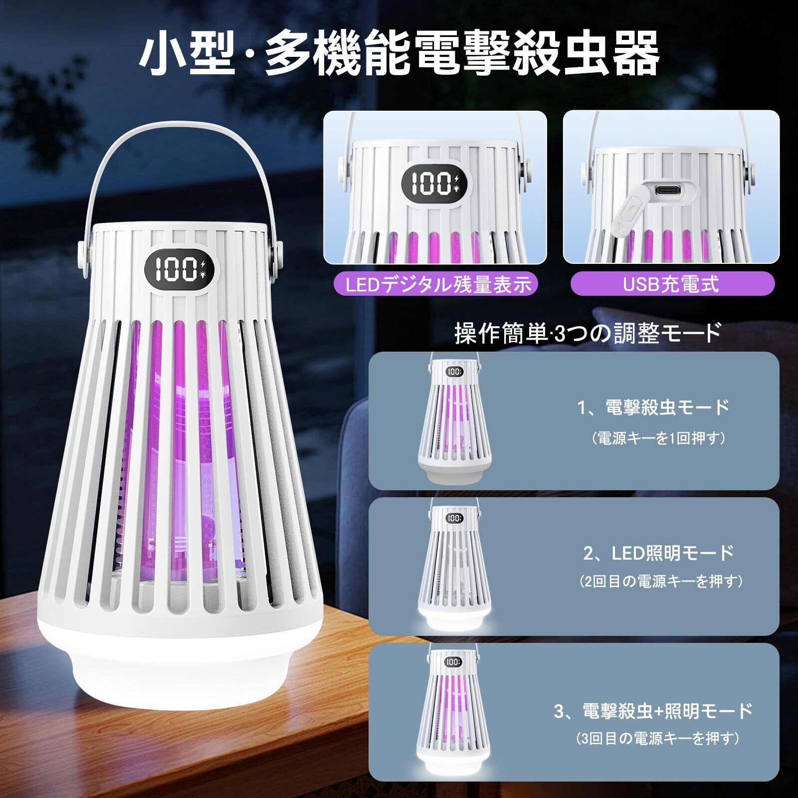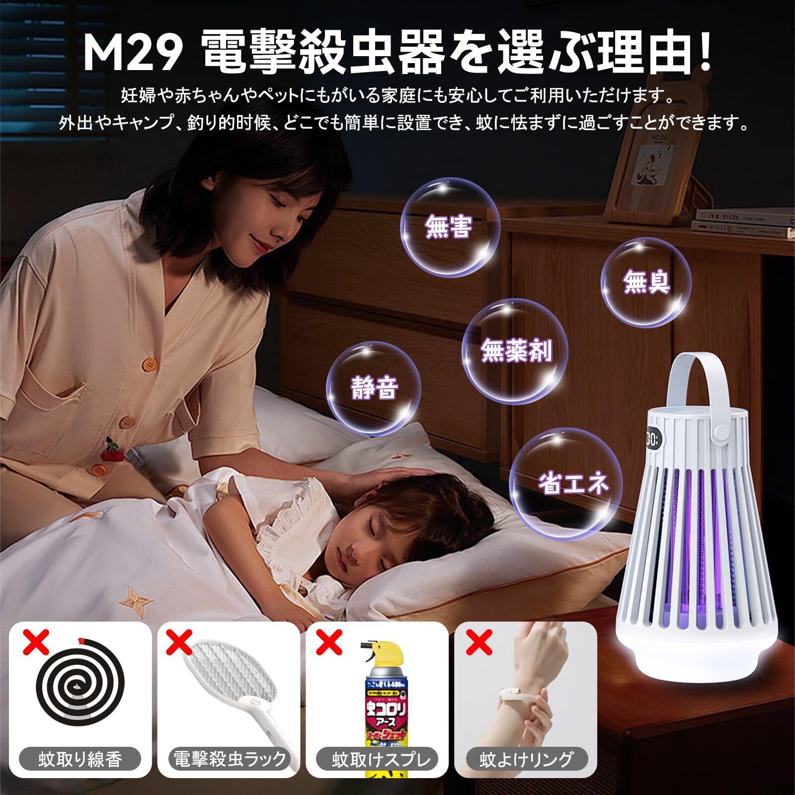 【2025年金賞·革新版】電撃殺虫器 コバエ取り M29 UV光源誘引式 360°強力殺虫灯 殺虫ライト 3000mAh大容量バッテリー 防水防雨 IPX4防水 USB充電式 急速充電 省エネ 薬剤不用 静音設計 据え置き&吊り下げ両用 ナイトライト機能付き 携帯便利 屋内/屋外などに適用 日本語説明書付き(ホワイト)