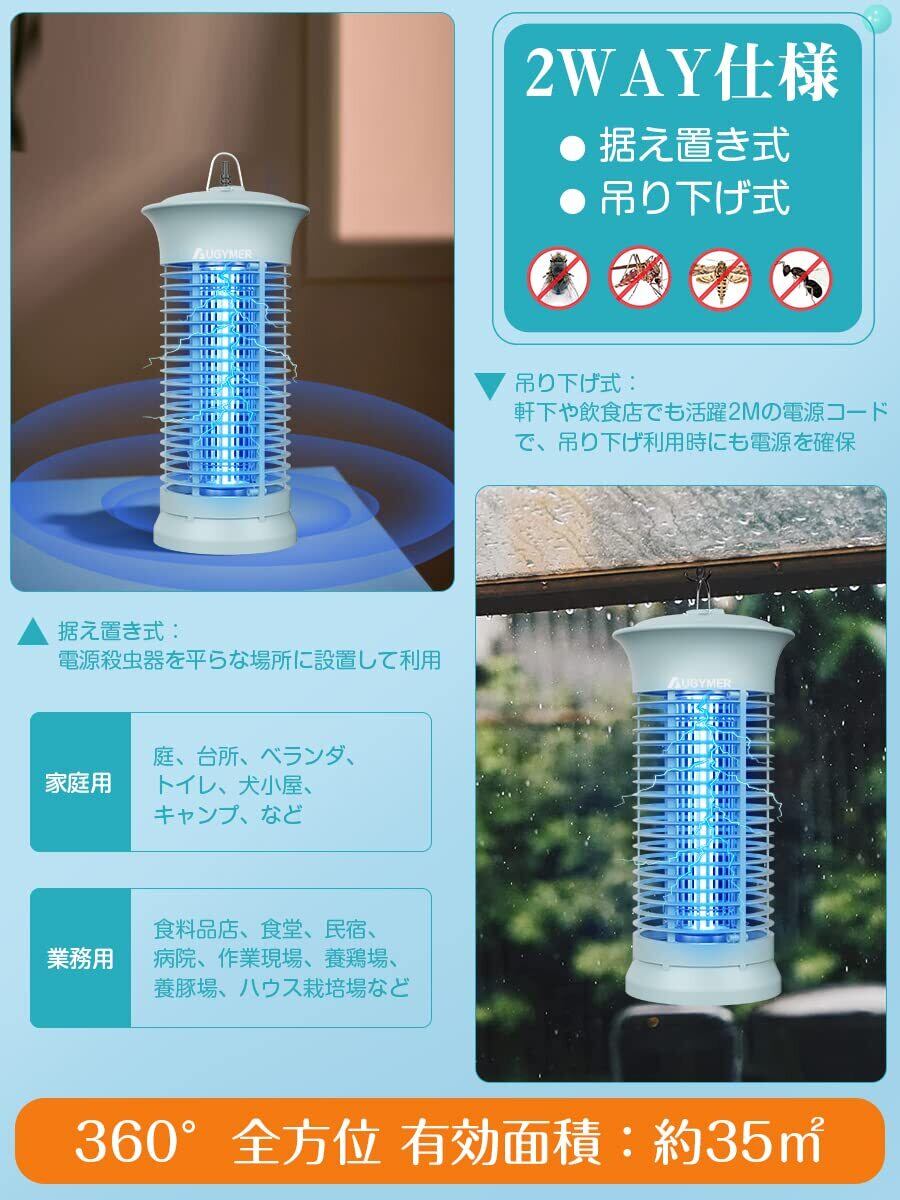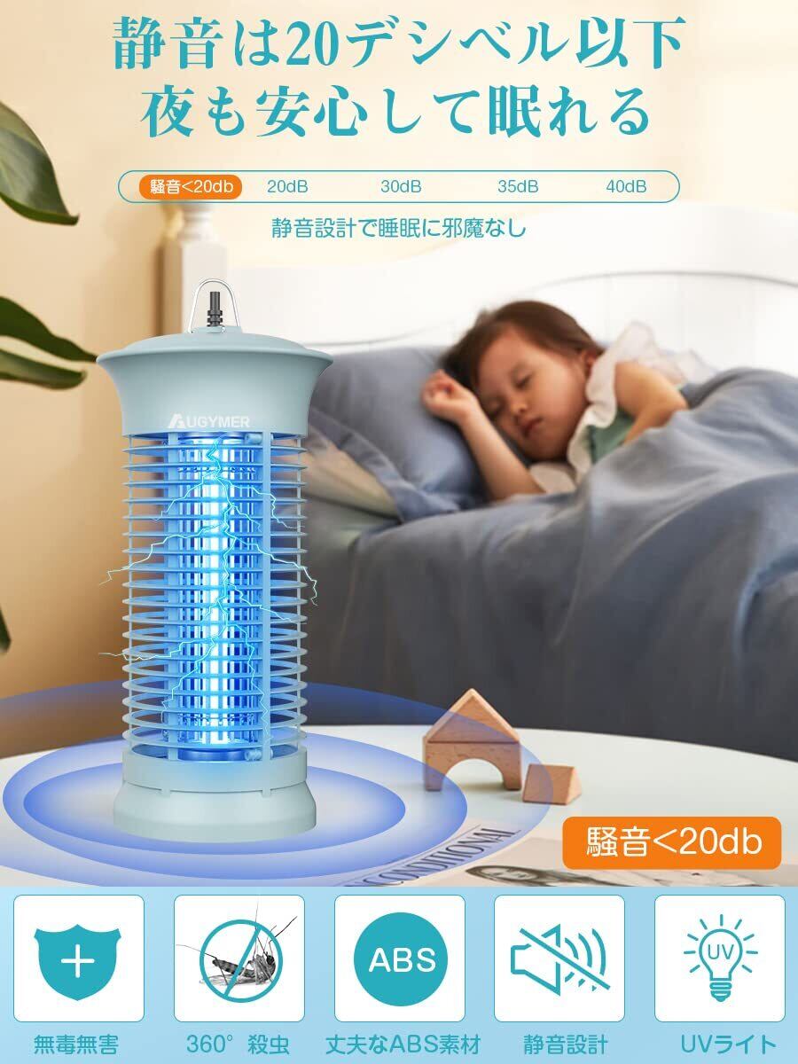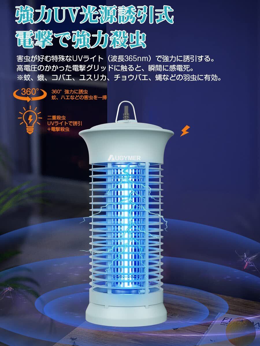 AUGYMER ハエトリ コバエ取り 電撃殺虫器 電気式 360°蚊除け uvランプ吸引 吊り下げ式&据え置き 式両用 静音 掃除ブラシ&用電球&2mケーブル付き お手入れ簡単 蠅/虫/蚊/蛾対策 室内用 寝室/居間/台所/玄関/居間/飲食店適用