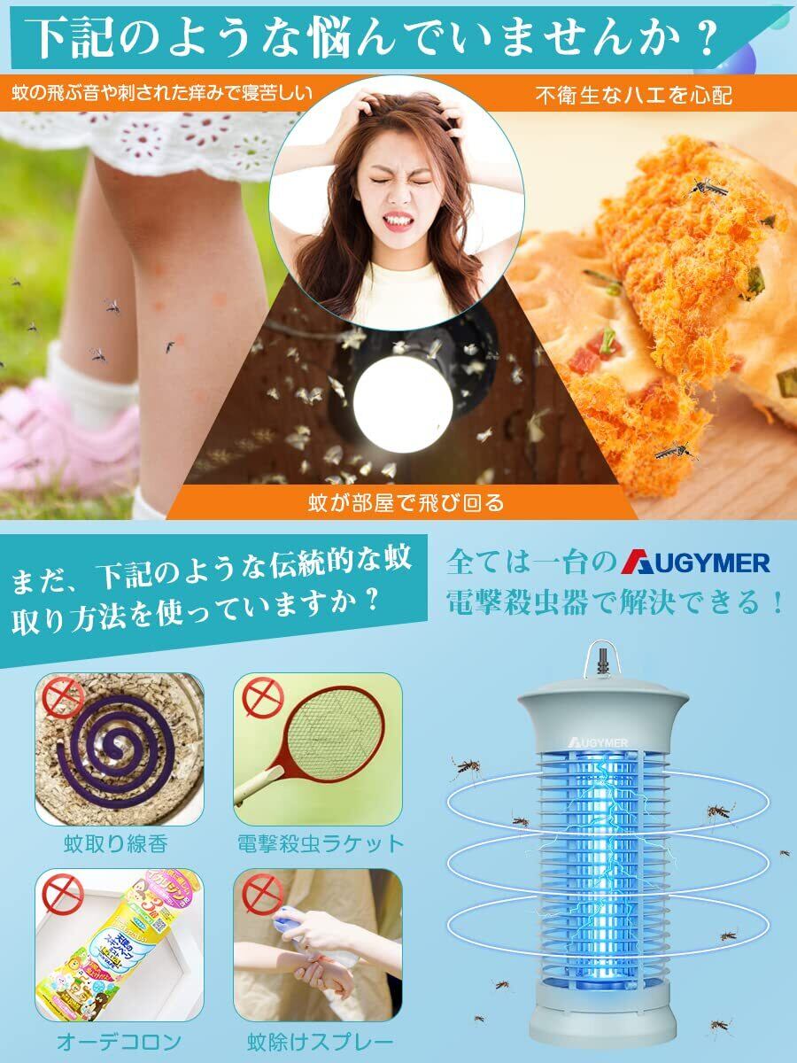 AUGYMER ハエトリ コバエ取り 電撃殺虫器 電気式 360°蚊除け uvランプ吸引 吊り下げ式&据え置き 式両用 静音 掃除ブラシ&用電球&2mケーブル付き お手入れ簡単 蠅/虫/蚊/蛾対策 室内用 寝室/居間/台所/玄関/居間/飲食店適用 | KSショップ