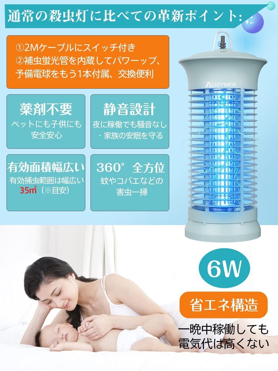 【パワフルな虫除け効果】6Wの補虫蛍光管を採用し、パワーが更にアップされ、従来品より有効範囲が広がり、360° 全方位から蚊などを誘引します。蚊よけランプの光が部屋のすべての部分を照らすことができるように、1.2メートルの高さ に吊るすことをお勧めします。また、予備電球としてオリジナリティーな電球をもう1本追加し、切り替えが簡単で、使用寿 命も倍伸ばします。