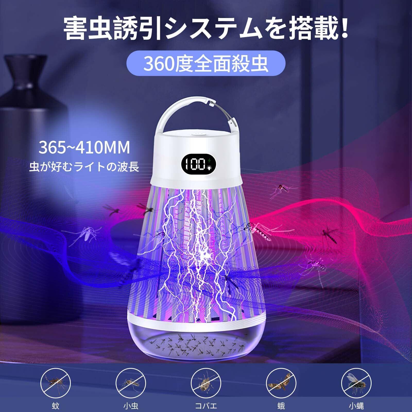 【360度光源吸引式 強力電撃殺虫器】強力電撃殺虫器、夏場の蚊虫対策グッズ!電撃蚊取り器には、365 nm(蚊誘引)、395nm(蛾誘引)、410 nm(コバエ誘引)であり、蚊や害虫が好む波長の光源が備わっています。これらの光は、蚊や害虫を引き寄せる役割を果たします。内蔵の2000V高圧グリッドで蚊を瞬時に撃退し、高い捕獲効率を実現。さらに省エネ設計で動作音も静かだから、快適な環境で蚊の悩みから解放されます。虫除けライト!バチバチっと鳴ったら害虫を退治してくれます。虫、蚊、蝿、蛾、カメムシ、コバエ、ノミバエ、チョウバエ、シバンムシ、ハエ対策です。